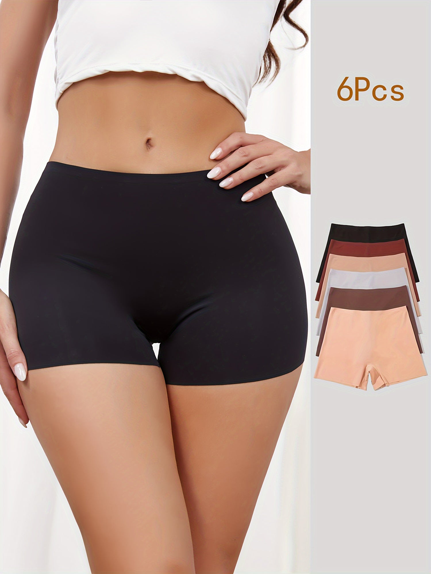 Set of 6 Seamless Mid-Rise Women's Underwear Shorts Solid Color No-Show