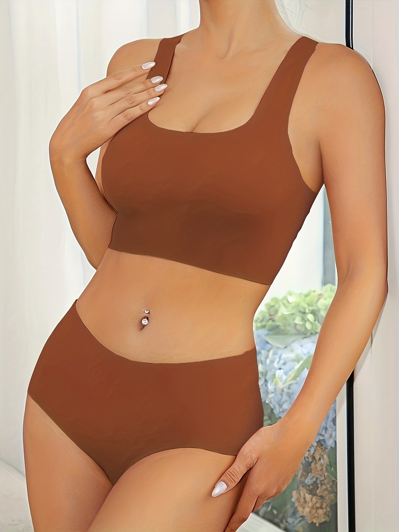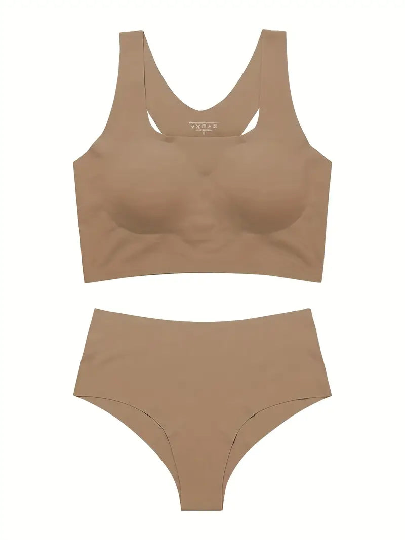 Seamless Wireless Racerback Lingerie Set with Matching Elastic Panties for Women