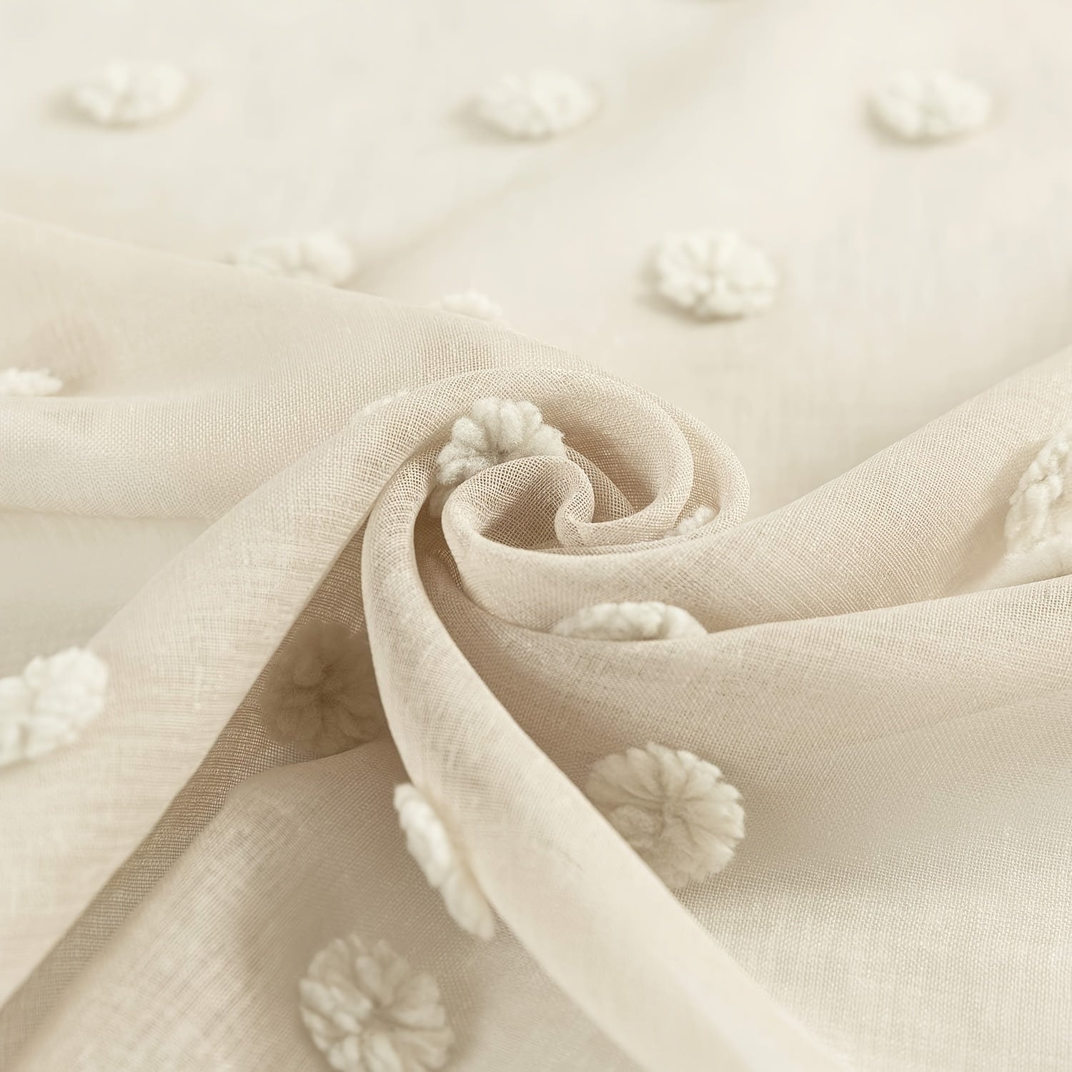 Sheer Panel with Rod Pocket Top, Boho Polka Dot Embroidery, Room Darkening Drapery