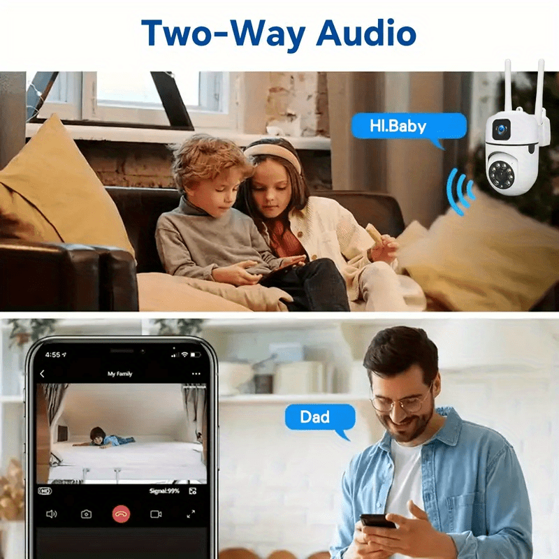 Security Camera with Dual Rotating Lenses Night Vision Motion Detection Two-Way Audio 355 Degree Panoramic