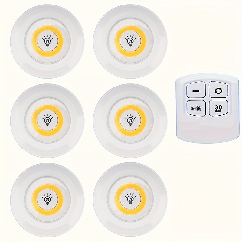 Wireless LED Under-Cabinet Lights with Remote Control for Kitchen Wardrobe and Indoor Use 6 Pack