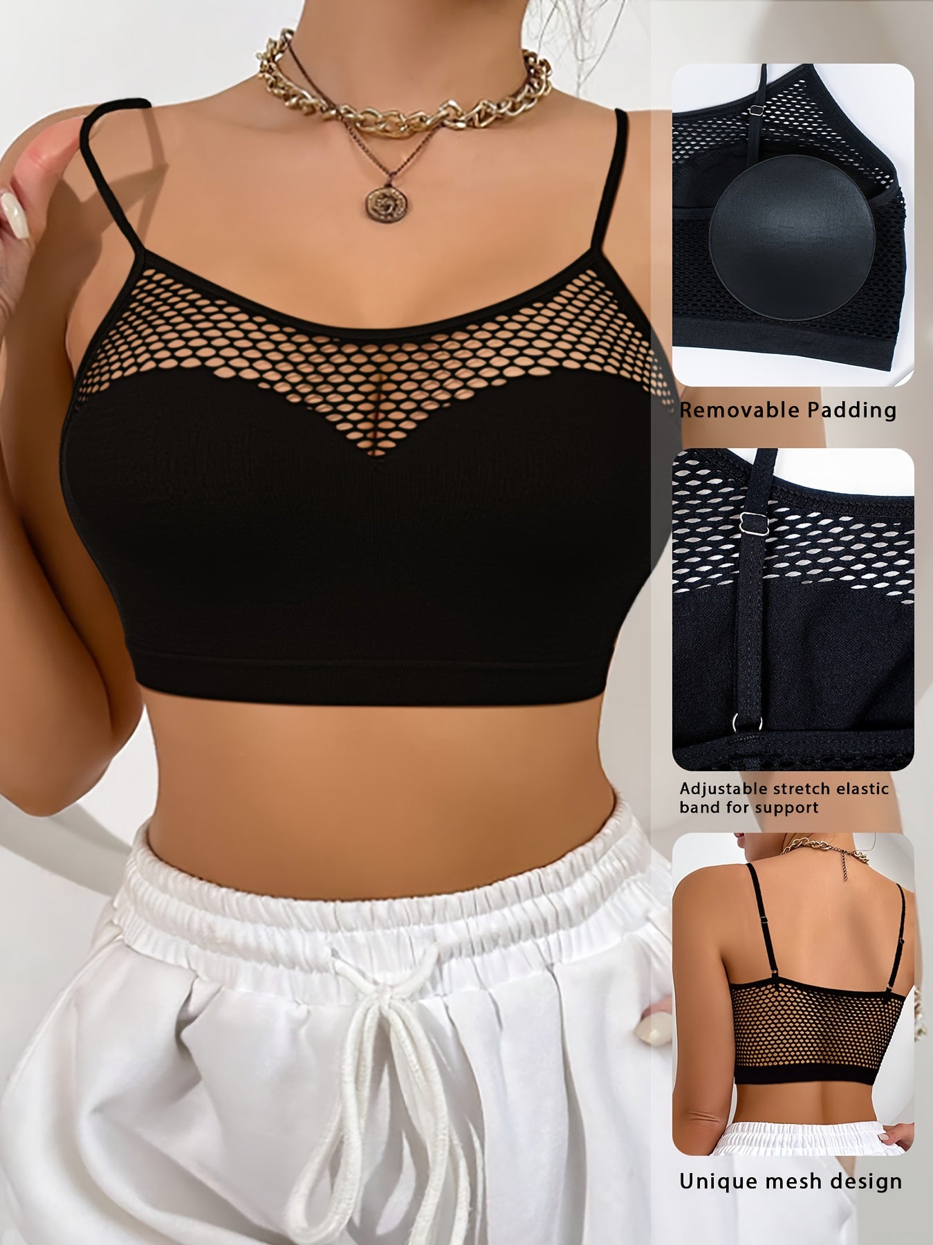 Women's Mesh Tank Top Bra with Removable Pads Solid Color Lingerie