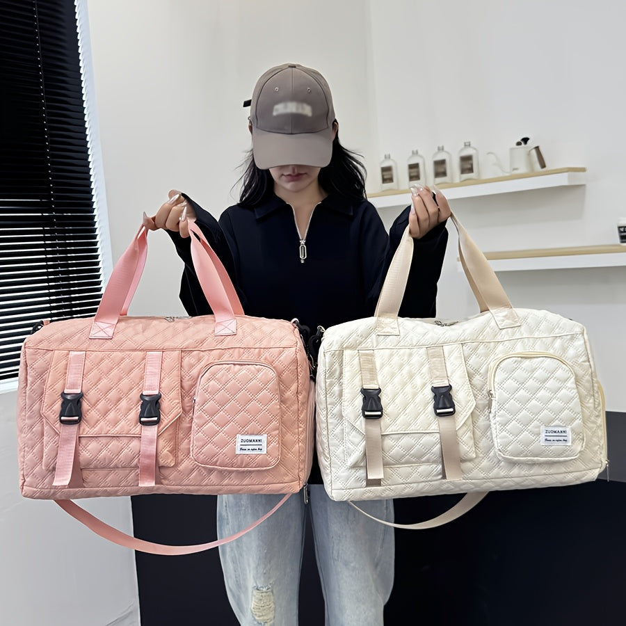 Durable Nylon Travel Duffle Bag for Overnight Trips in Gray Pink Purple Black