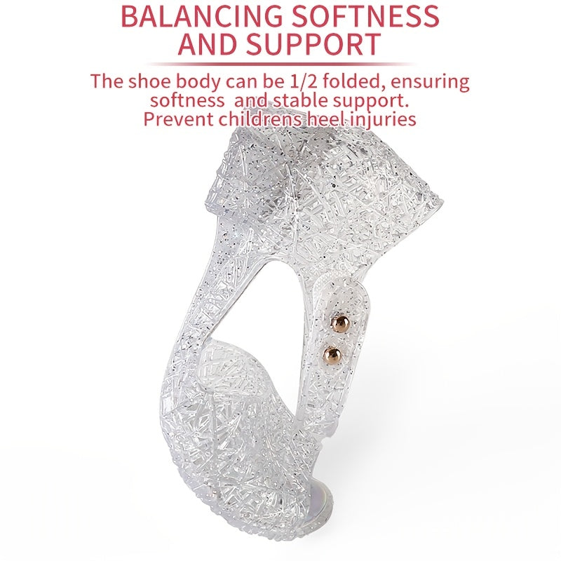 Girls' Sparkling Blue Crystal Sandals Mid Heel Breathable PVC for Parties and Daily Wear