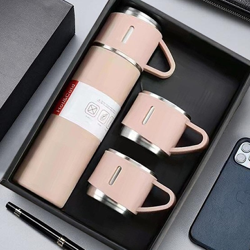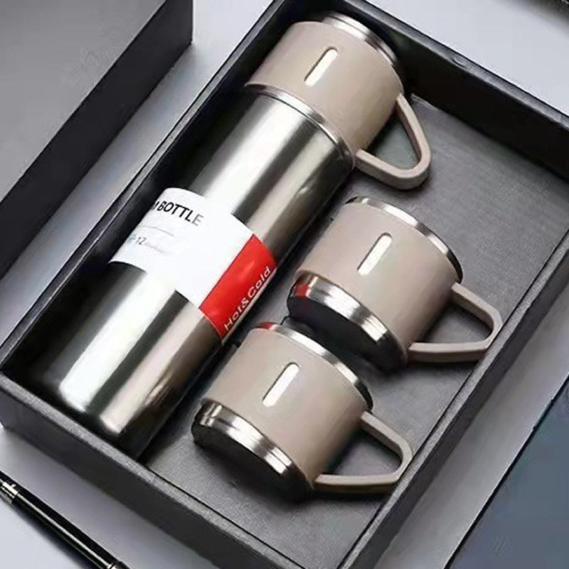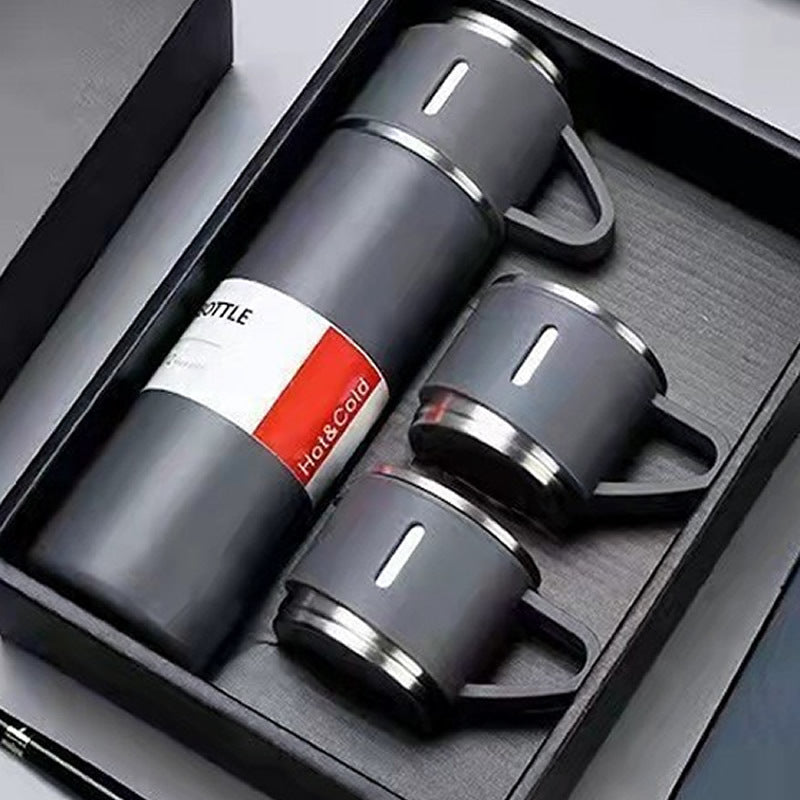 Stainless Steel Vacuum Insulated Hot Water Bottle Set with Cups 500ml Portable