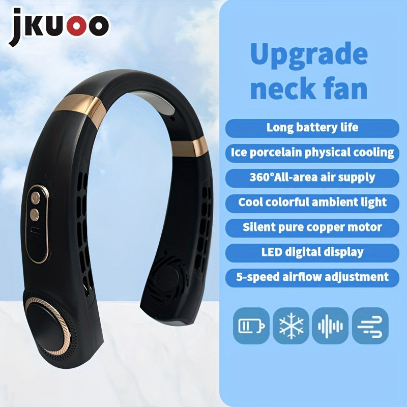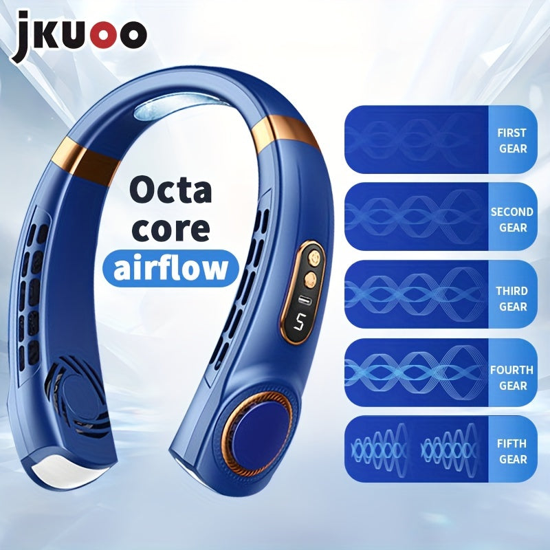 Portable Neck Fan 5-Speed Adjustable USB Rechargeable for Sports Travel Summer