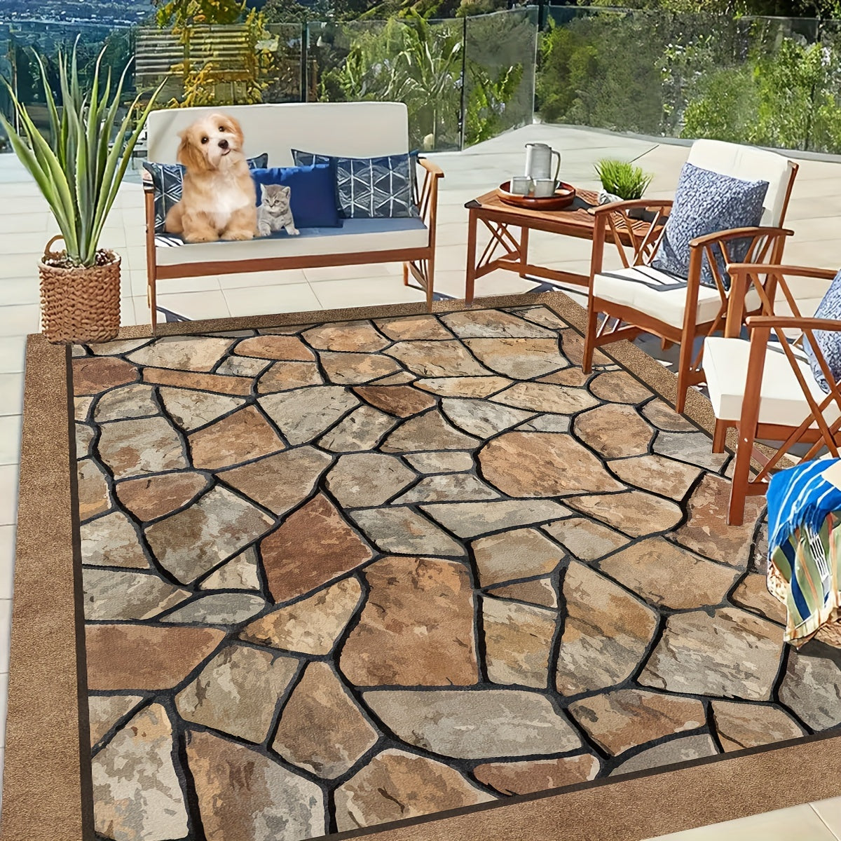 Stone Pattern Outdoor Patio Rug Water-Absorbent Stain-Resistant Polyester Braided Deck Carpet for Camping RV Sunroom Living Room