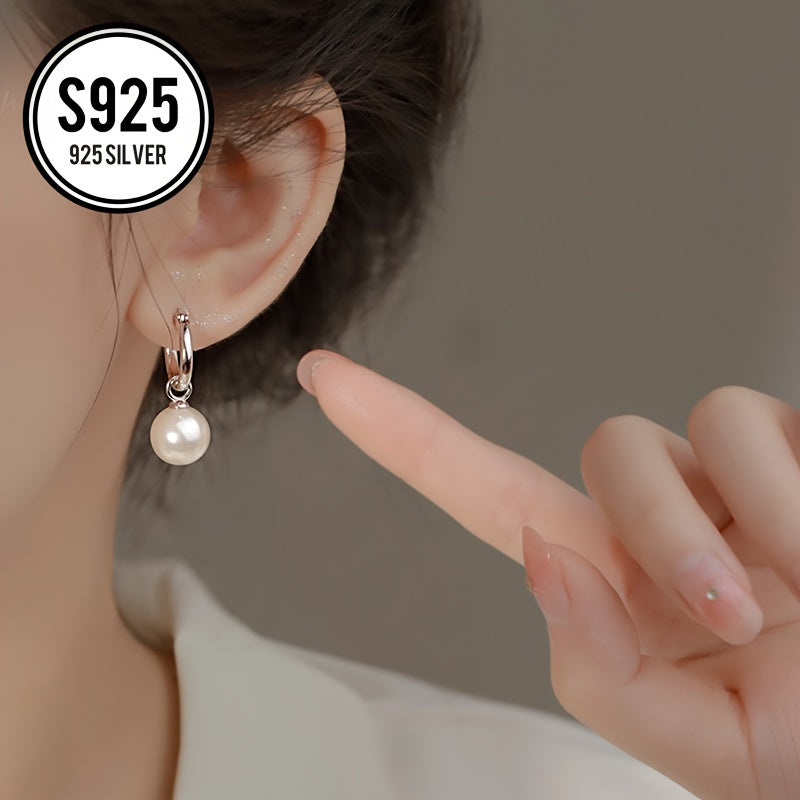 Sterling Silver Pearl Hoop Earrings Hypoallergenic White Gold Plated Oval Shape for Special Occasions