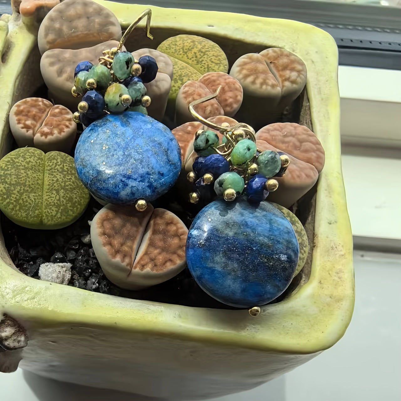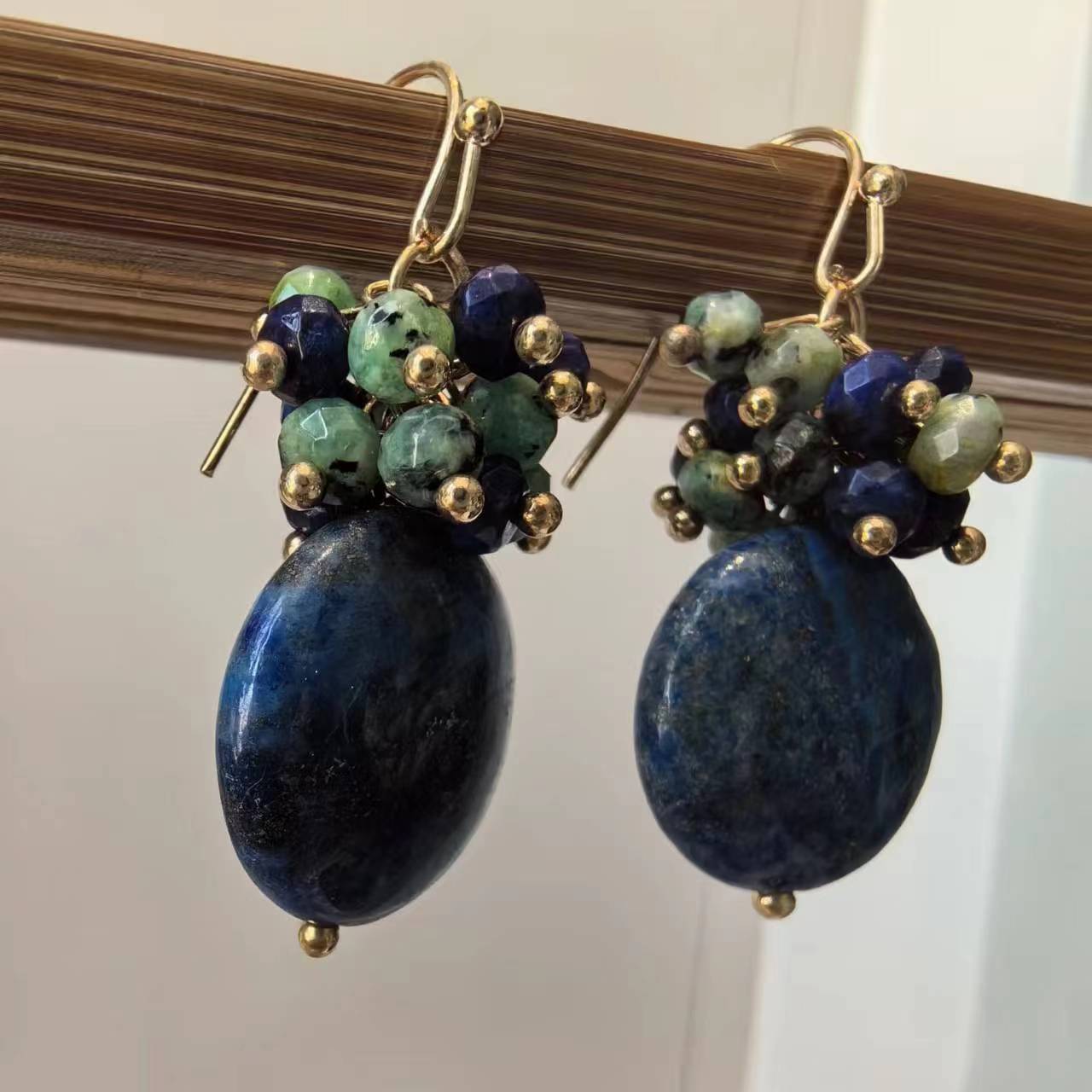 Antique-Inspired Gemstone Cluster Earrings Deep Blue Denim Emerald Green Lapis Turquoise