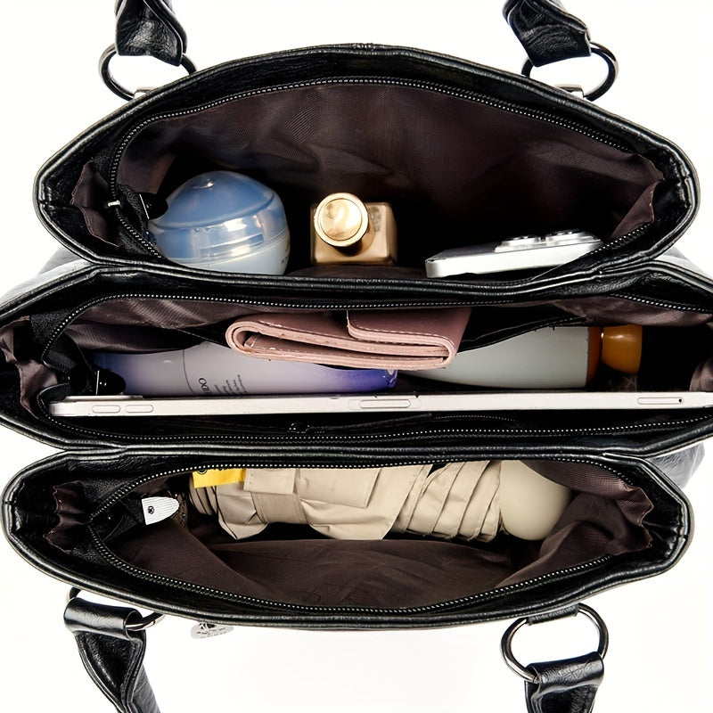 Black Tote Bag for Women with Detachable Strap and Starfish Embossed Design Large Capacity for Shopping and Daily Use