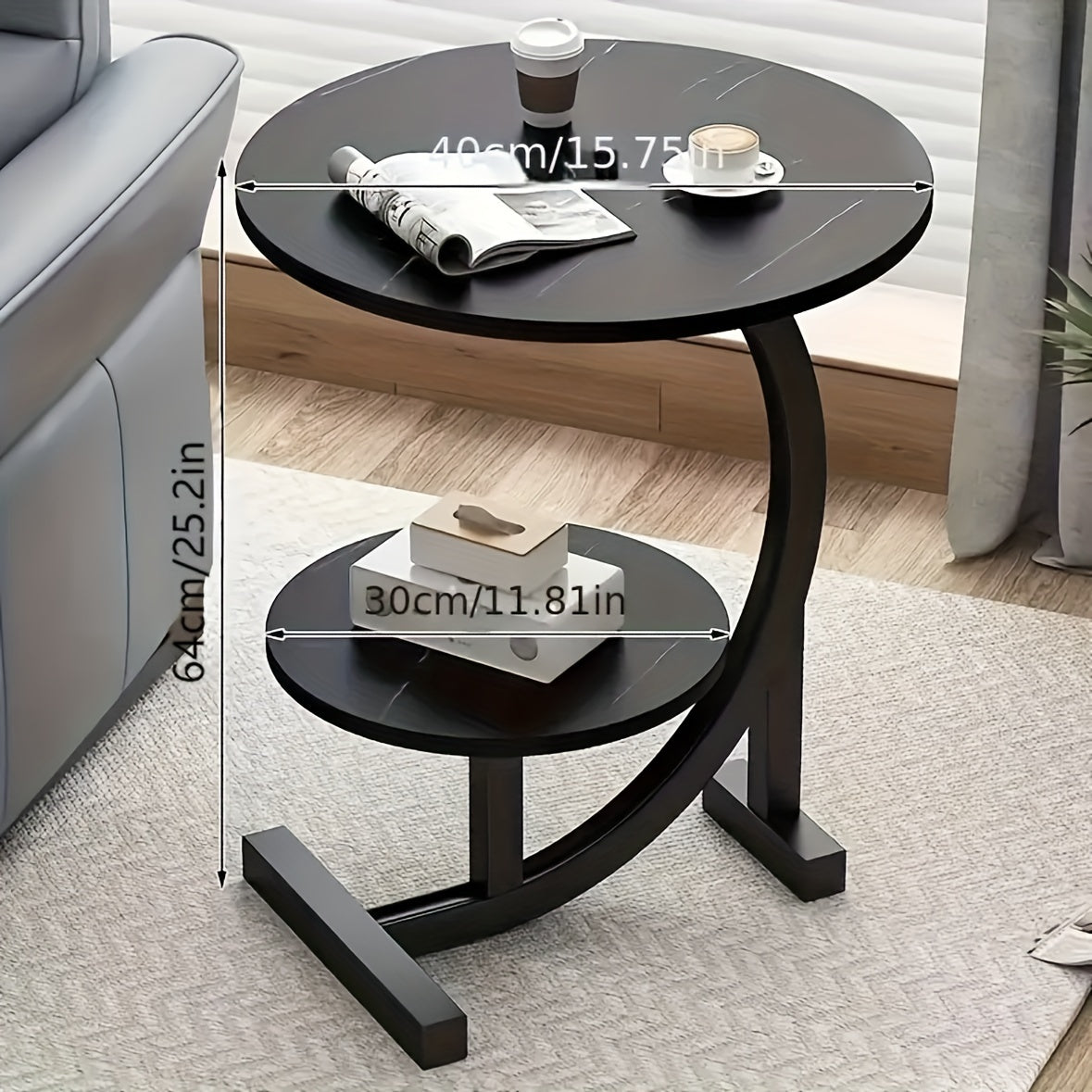 Double Layer Coffee Table with Metal Legs Wood Top for Living Room Office Balcony Black White Brown