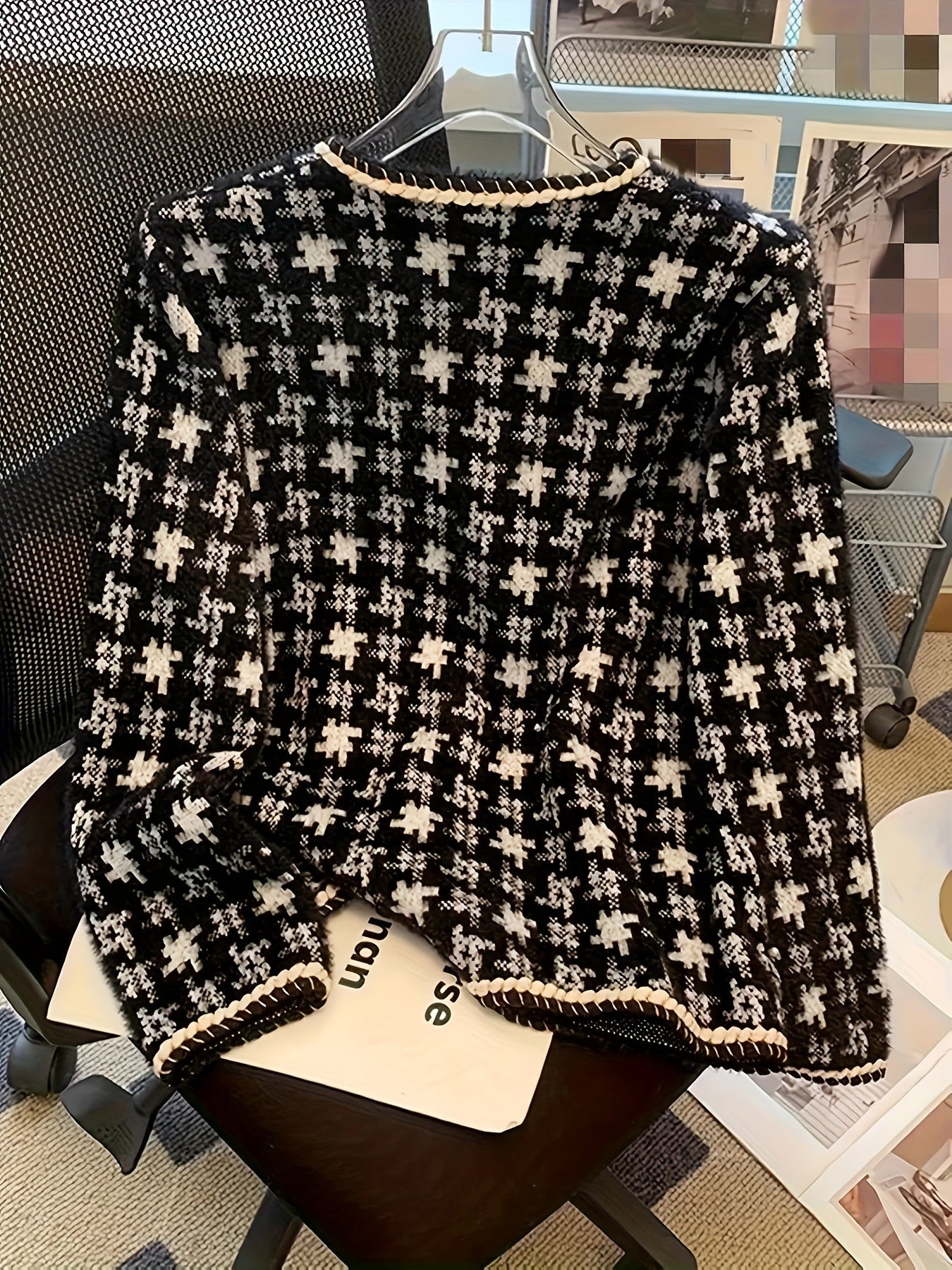 Women's Houndstooth Knit Cardigan Long Sleeve Open Front Fall Spring Casual