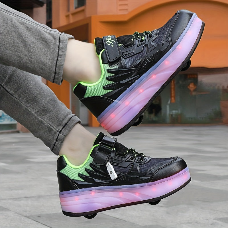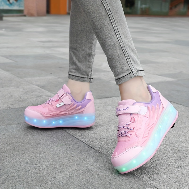 Girls Low Top LED Roller Shoes Lightweight Breathable All-Season Indoor Outdoor
