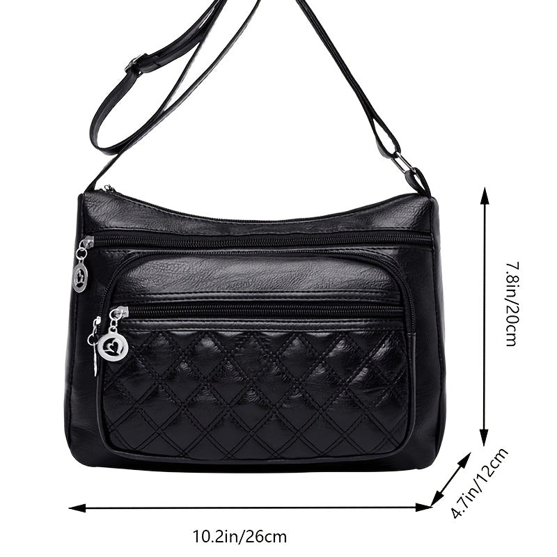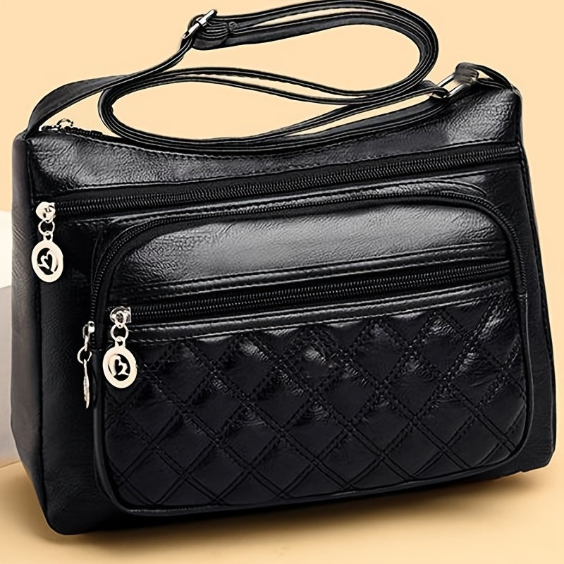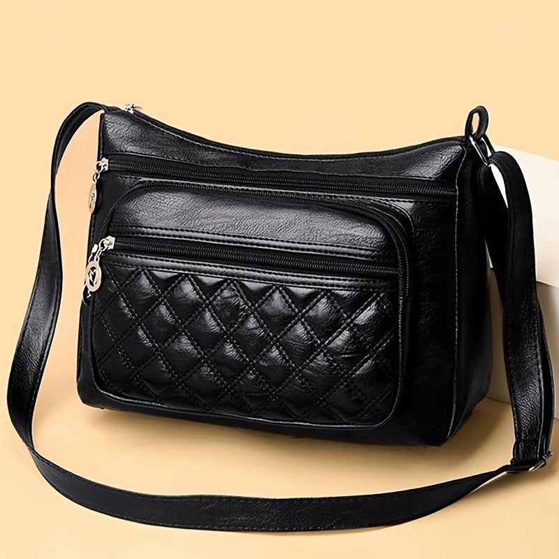 Women's Quilted Multi-Layer Shoulder Bag with Adjustable Strap and Zippered Compartments