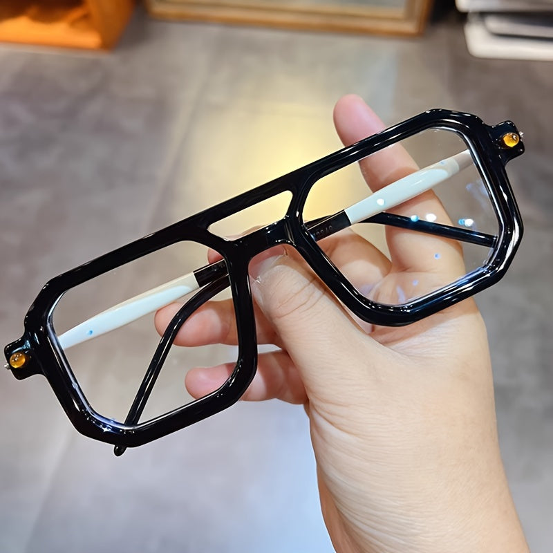 Retro Large Frame Glasses Men Women Double Bridge Stylish Eyewear for Daily Wear