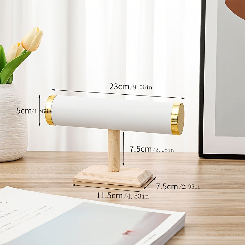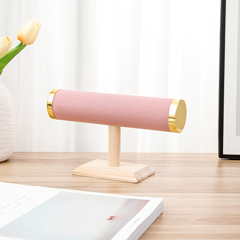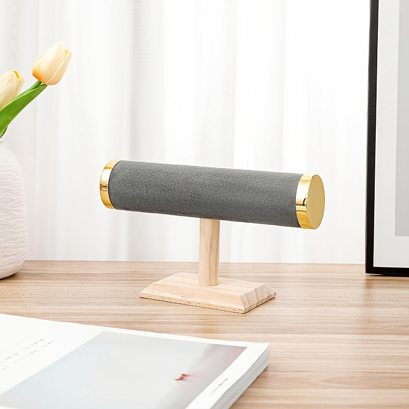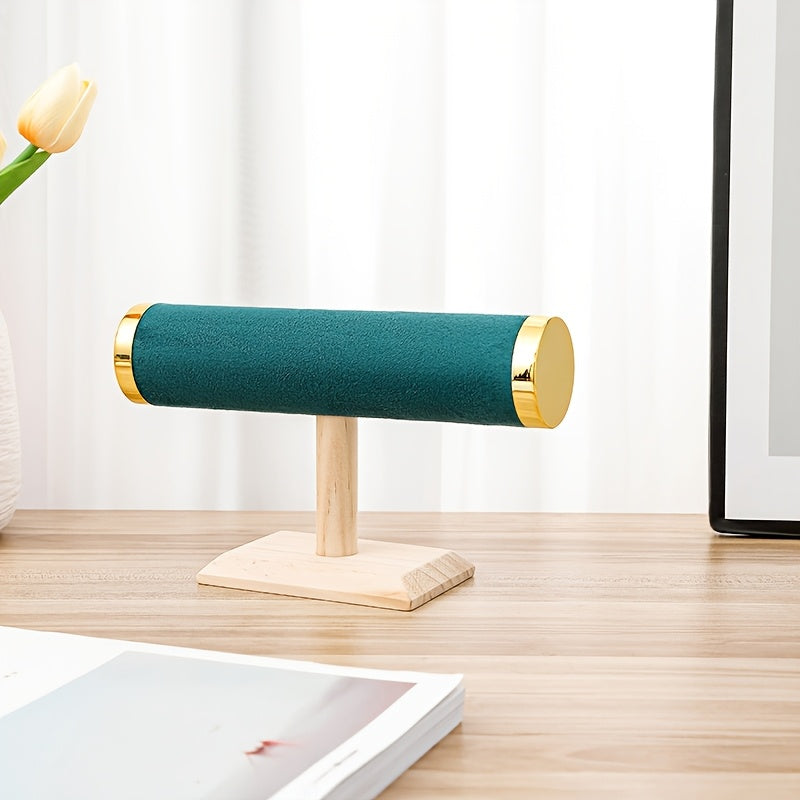Wood Jewelry Organizer Stand with Velvet Lining and Gold Accents for Necklaces Watches and Bracelets