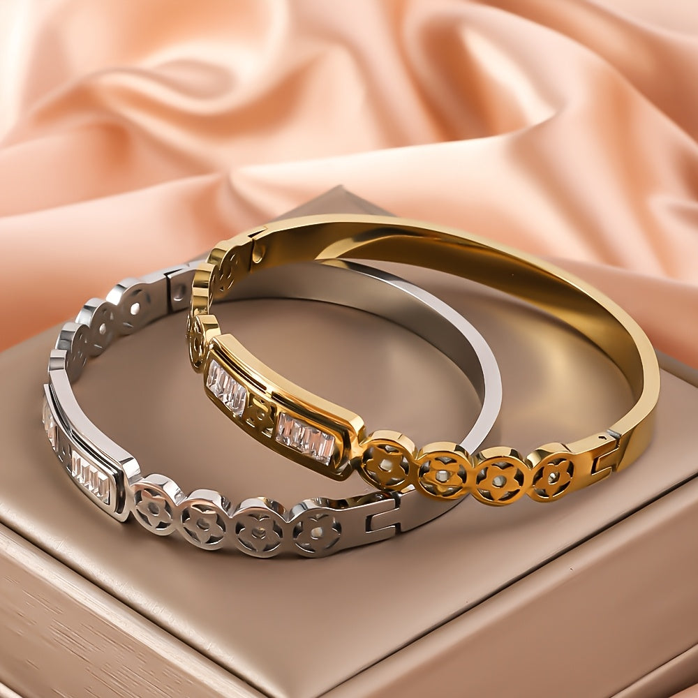 Women’s Stainless Steel Bracelet with Rhinestones and Star Design Bangle Jewelry