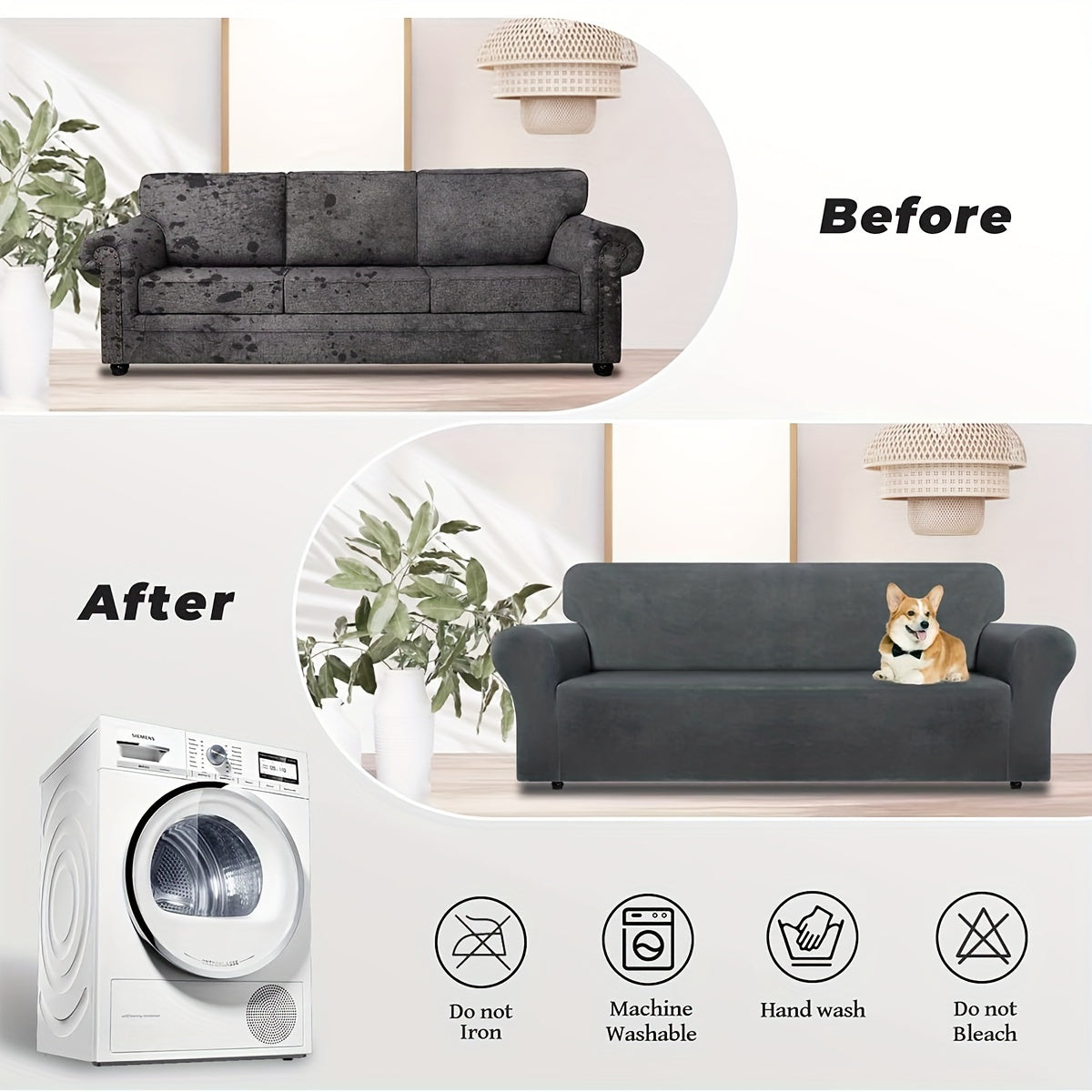 Velvet Sofa Cover Elastic Bottom All Seasons Pet Scratch Protection