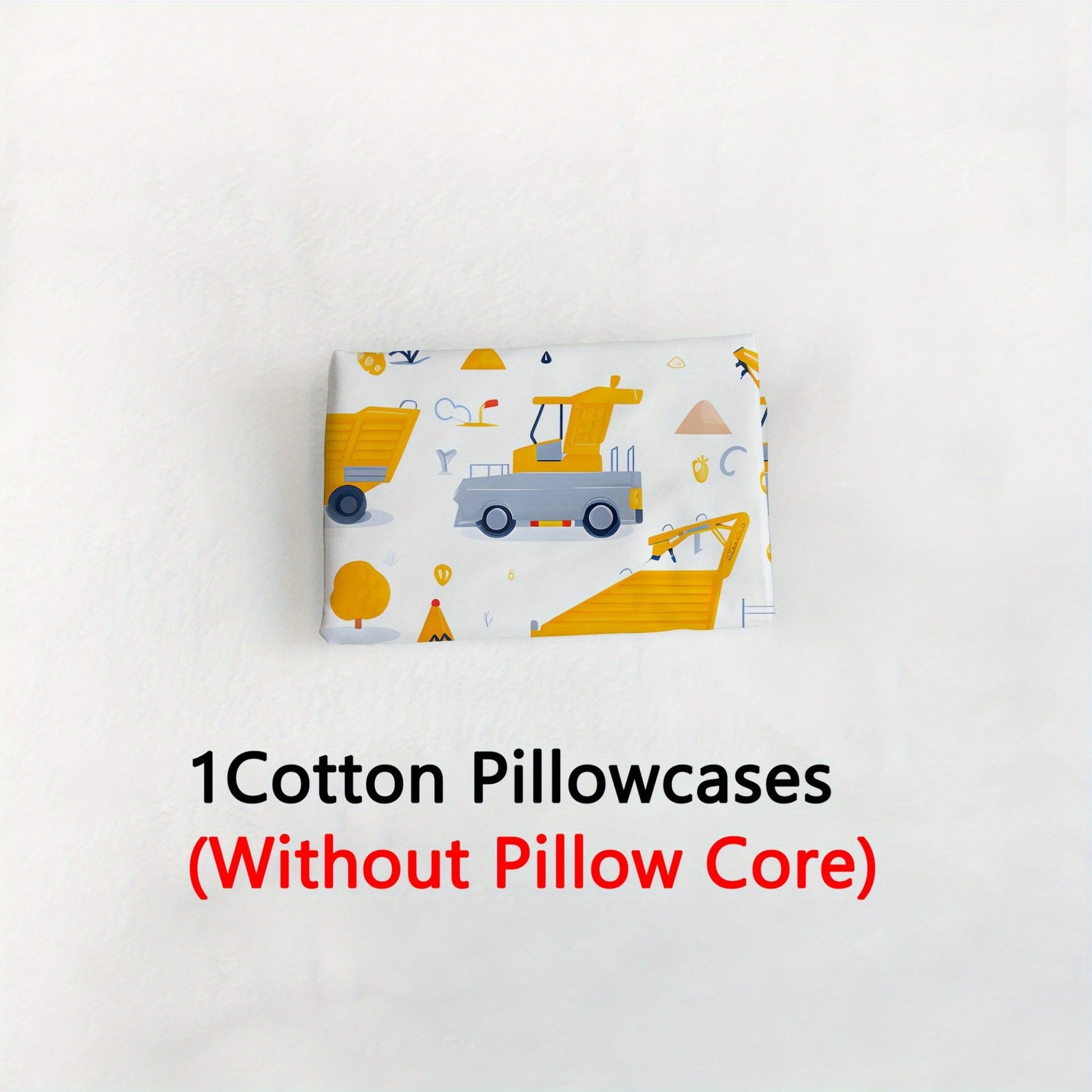 Cotton Pillowcase with Cartoon Engineering Vehicle Design, Soft and Skin-Friendly