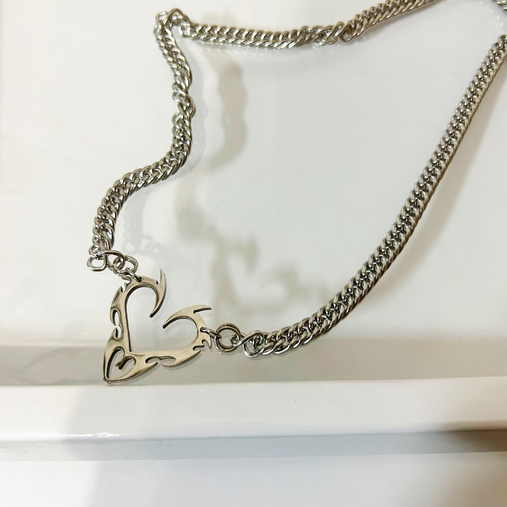 Titanium Steel Punk Rock Hollow Flame Heart Pendant Necklace Minimalist Jewelry