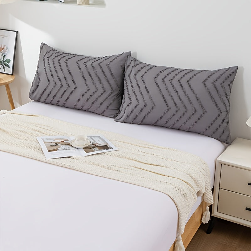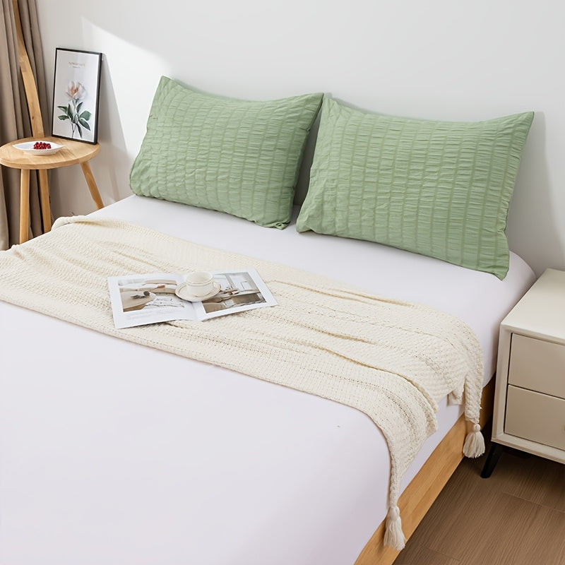 Set Of 2 Polyester Pillowcases 50x70cm Bubble Gauze Cutwork Skin-Friendly