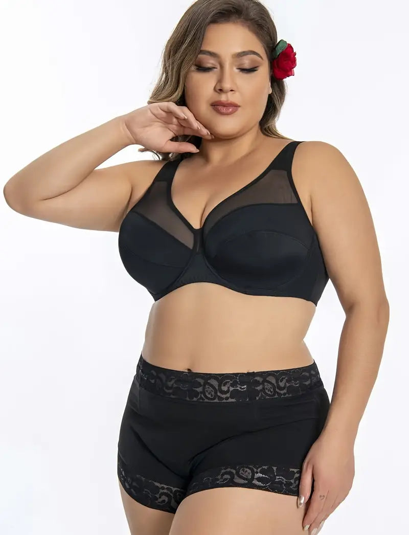 Plus Size Elegant Bras for Women Full Coverage Underwire Non Padded Contrast Mesh