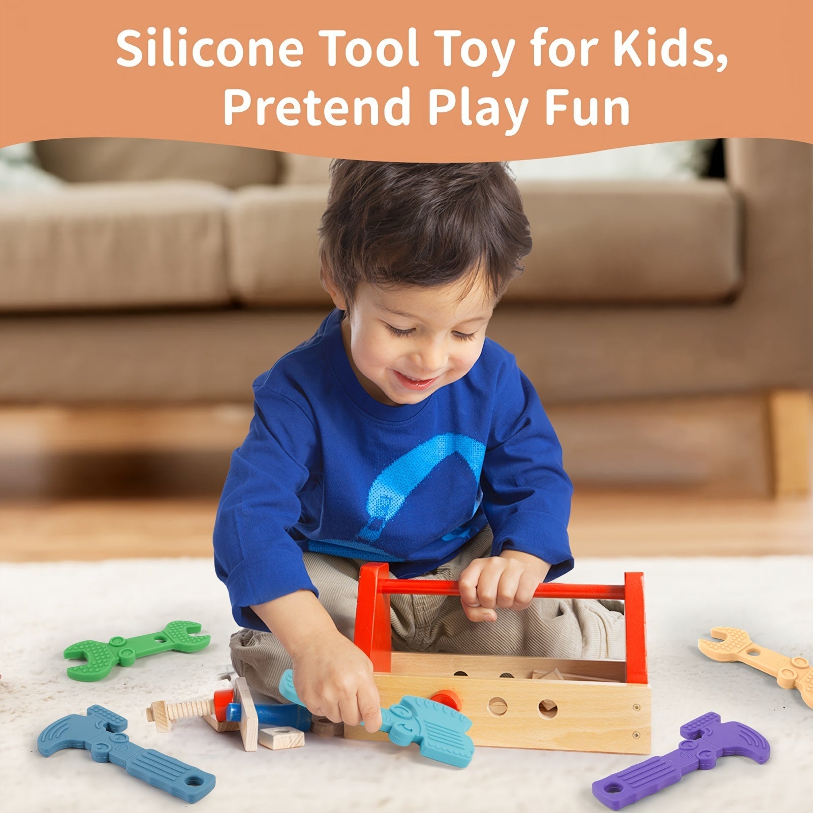 Baby Toy Set 4-Pack Silicone Tools for Toddlers Soft-Textured Hammer Wrench Spanner Pliers Gift
