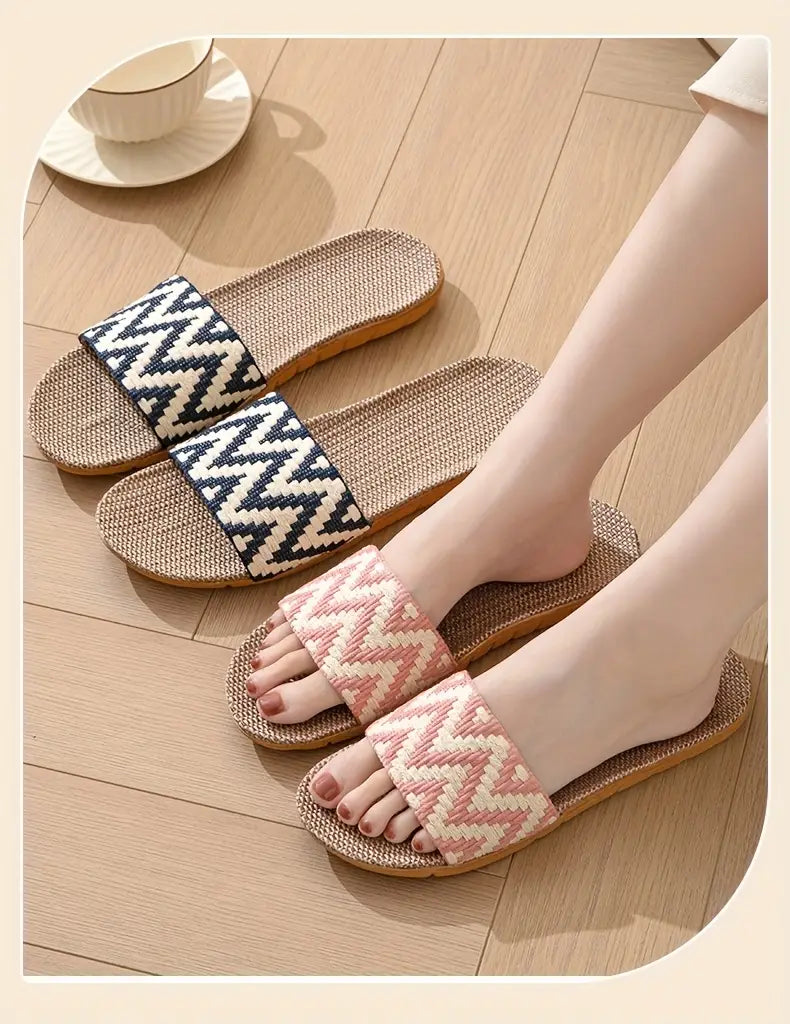 Unisex Linen Slip-On Slippers with Chevron Pattern Non-Slip EVA Sole