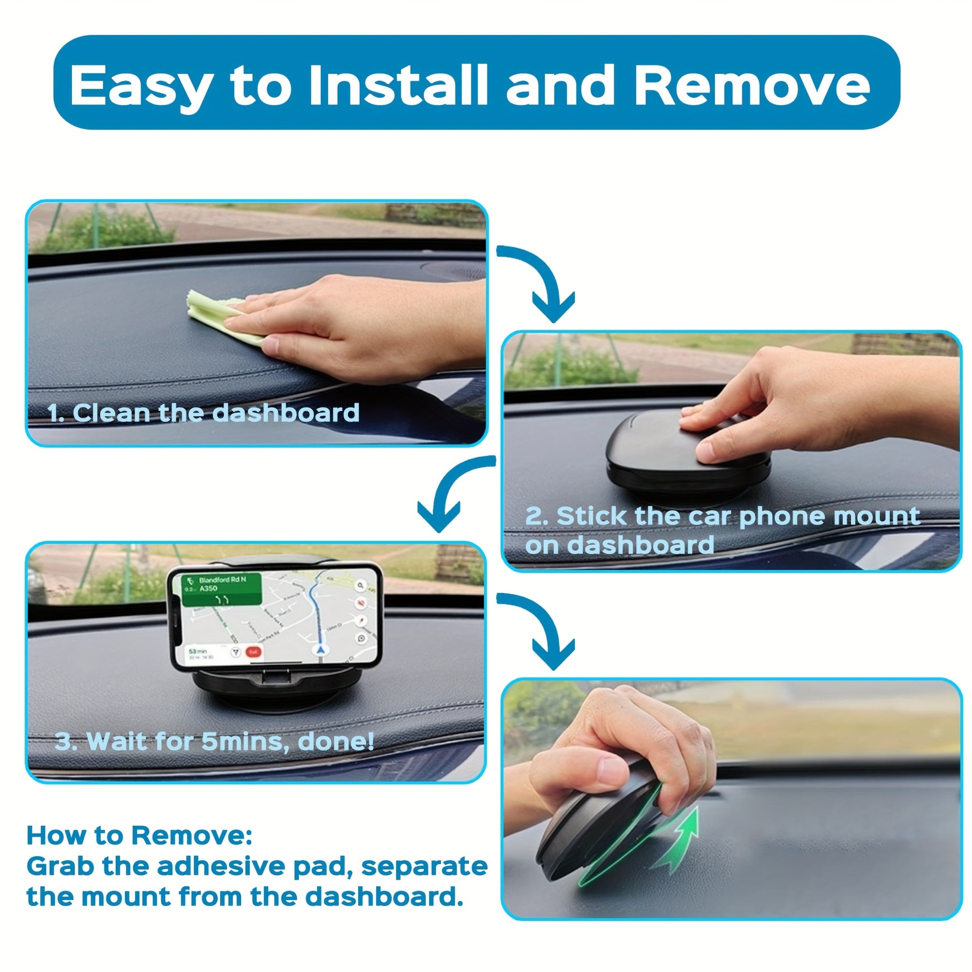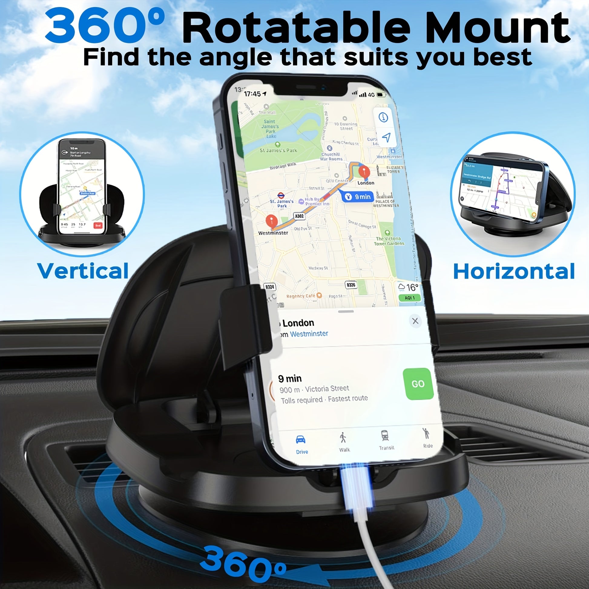 Universal Car Phone Mount Rotating 360°, Adjustable Holder for iPhone and Android