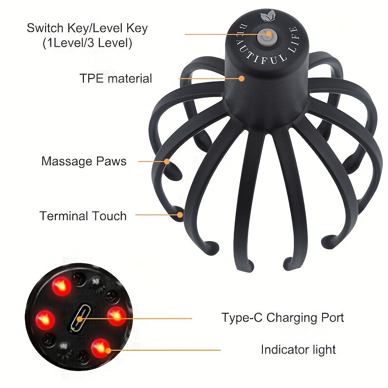 USB Rechargeable Head Massager with 360° Multi-Claw Vibration Deep Tissue Stimulator