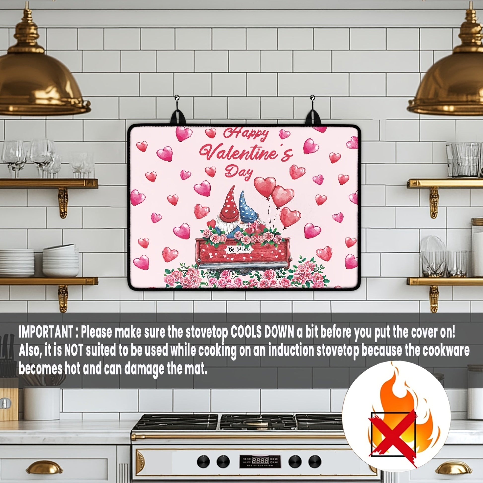 Valentine's Day Gnome Stovetop Cover Heat-Resistant Non-Slip Kitchen Decor