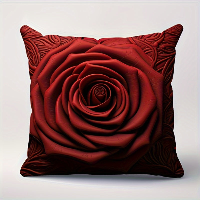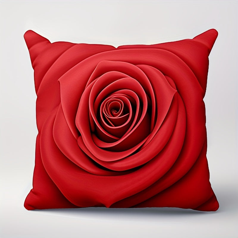 Valentine's Day Red Rose Pillow Cover with Floral Heart Design Polyester Blend Zippered Cushion Case for Sofa Bed Office Decor