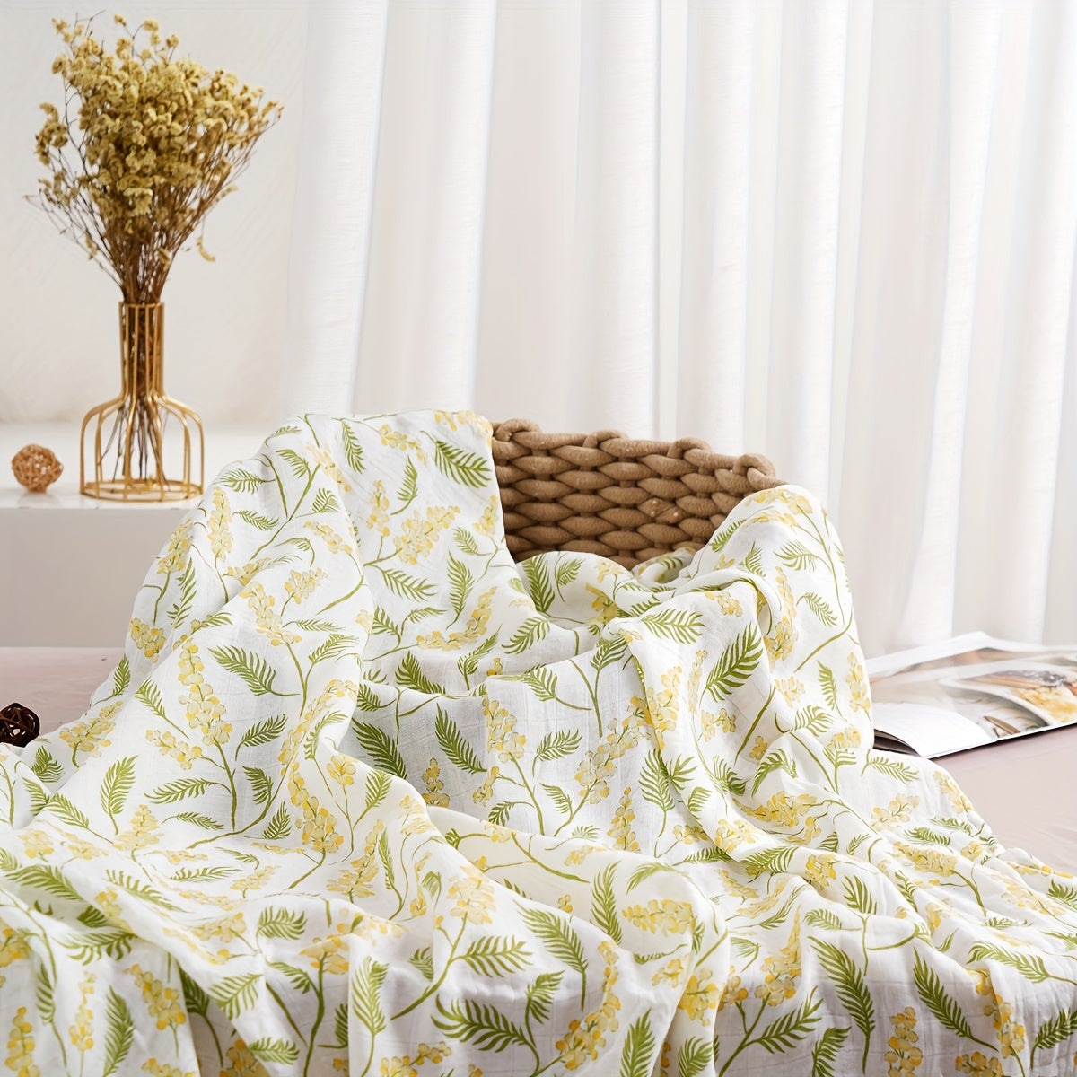 Baby Swaddle Blanket Soft Bamboo 2-Layer Plant Print for Sleep and Play
