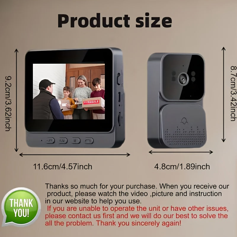 Video Doorbell with Intercom Camera 10.92cm Screen Infrared Night Vision Two-Way Audio Long Battery