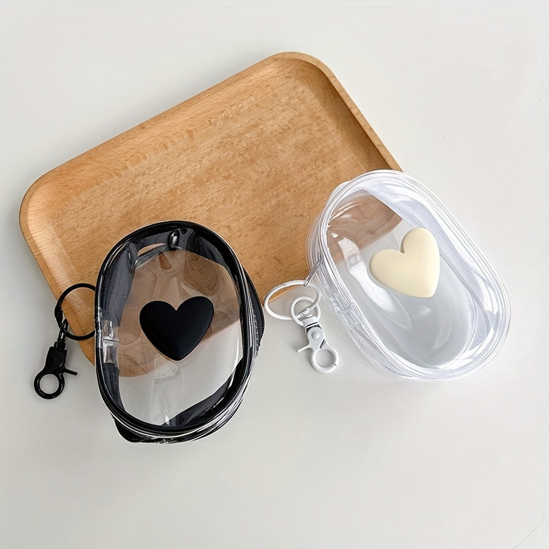 Waterproof Heart-Shaped PVC Cable Organizer Bag with Keychain for Headphones and Accessories