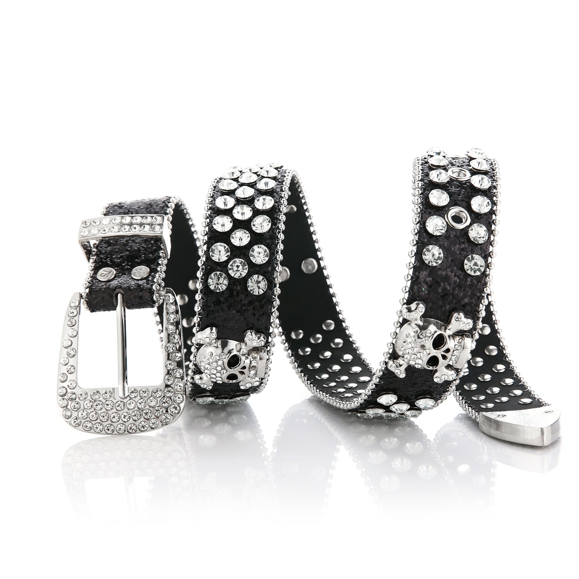 Cowboy Cowgirl Rhinestone Skull Rivet Belt Sequin PU for Hip Hop Jeans
