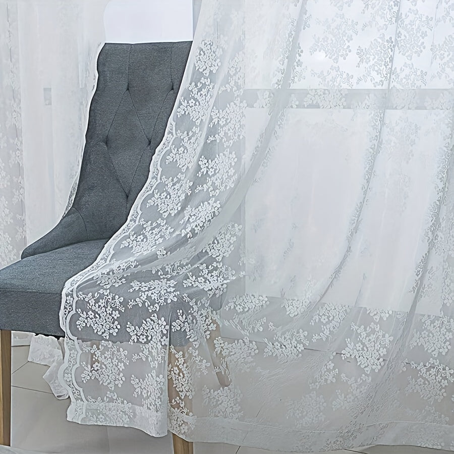 White Lace Window Screen with Double Lace Rod Solid Color Jacquard Curtain