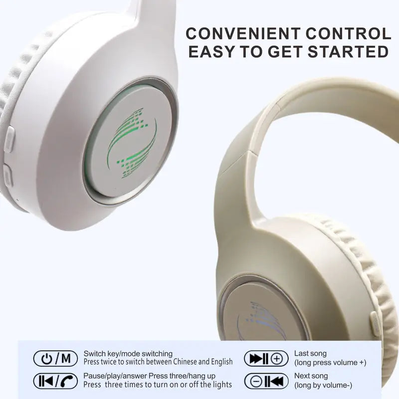 Wireless Over-Ear Headphones with LED Lights Long Battery Life High Fidelity Stereo for Gaming Running Adults