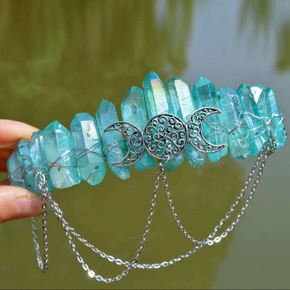 Women’s Natural Stone and Alloy Witch Crown Headband for Eid Celebrations