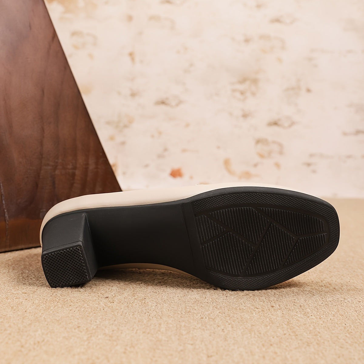 Women Beige Chunky Heel Pumps Square Toe Dress Shoes for Office Formal Wear