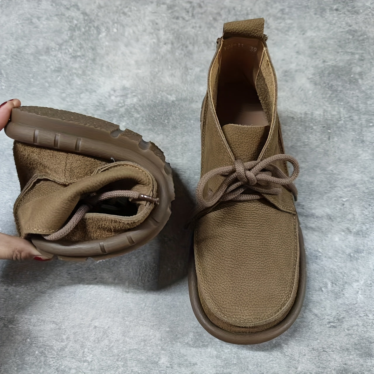 Women Cow Leather Ankle Boots Solid Color Lace-Up Flat Heel All-Season
