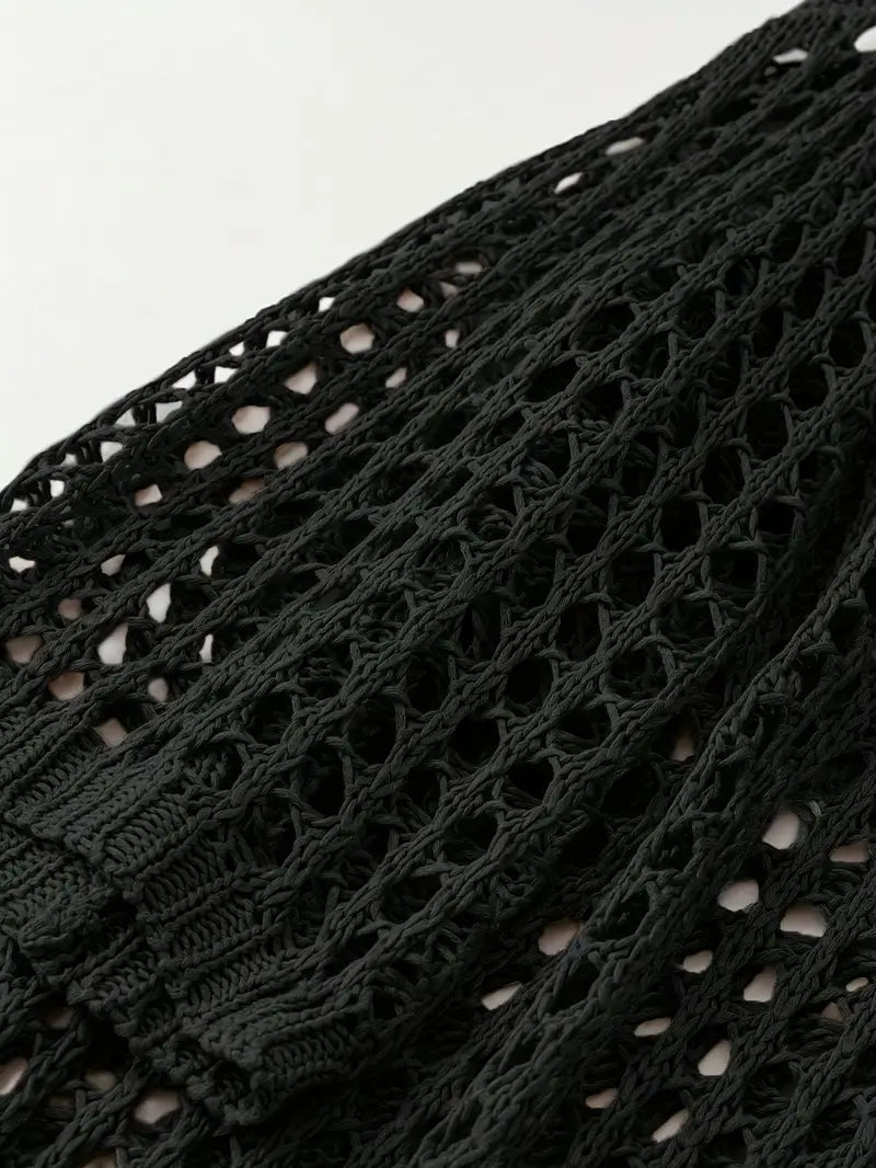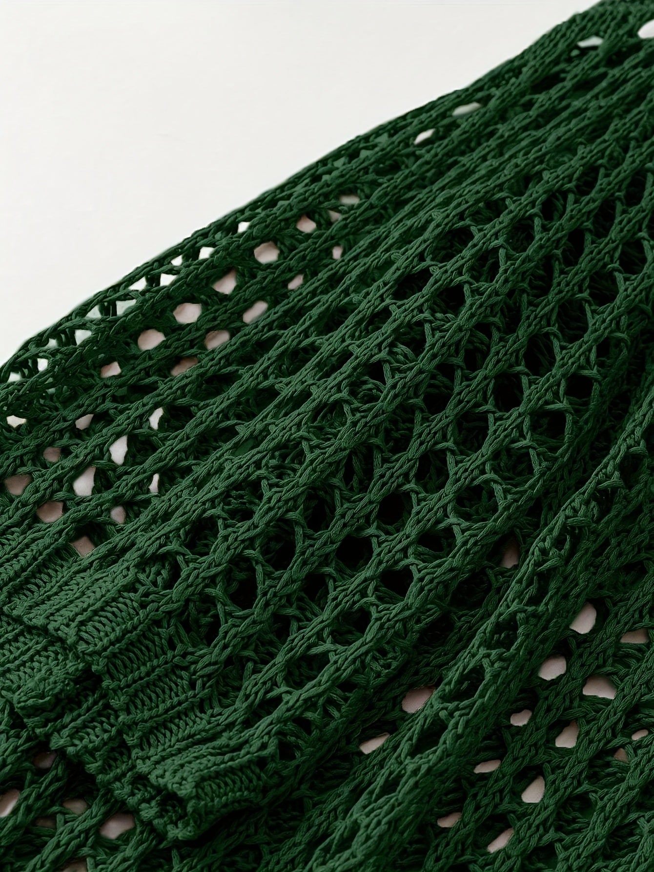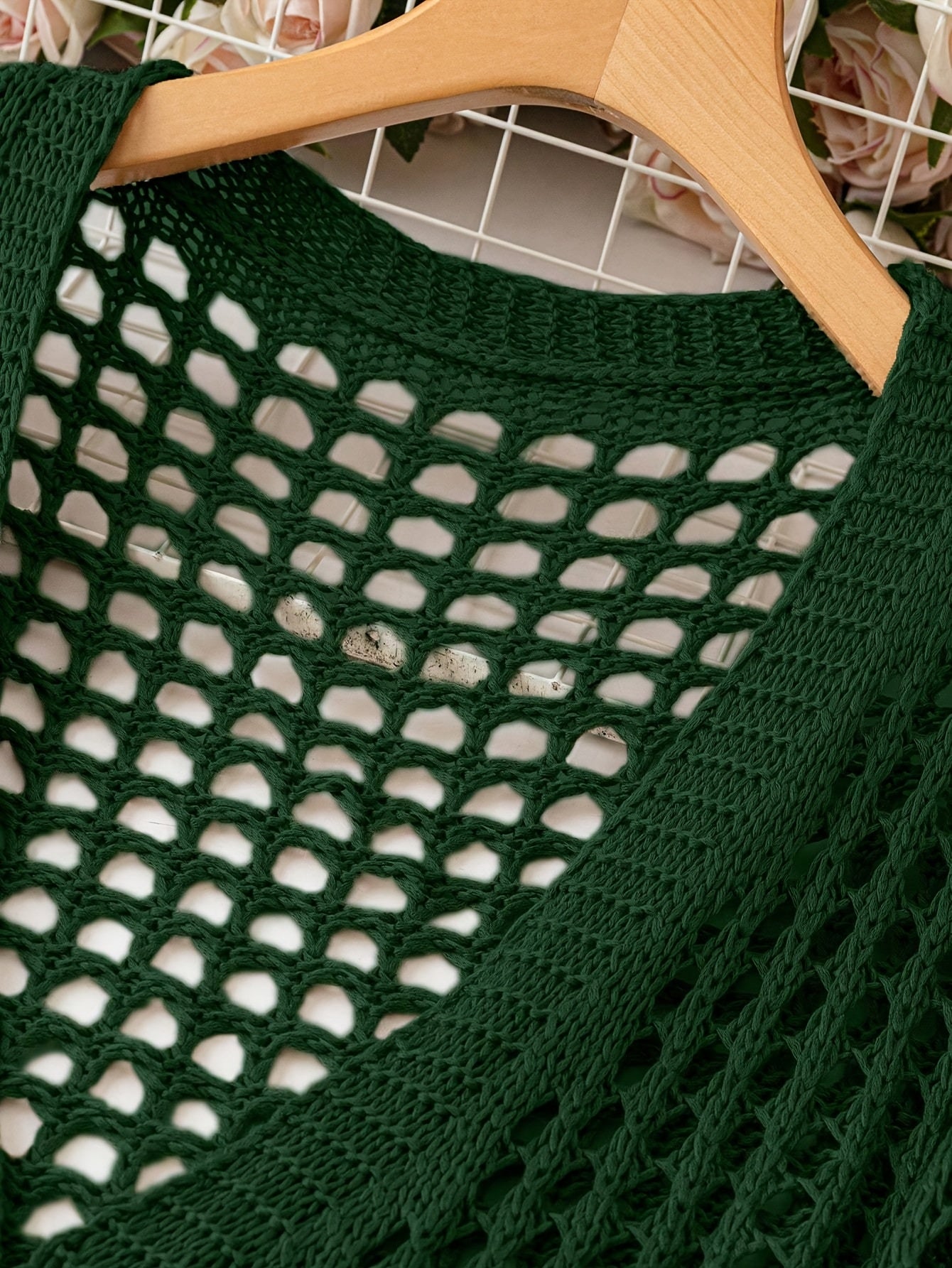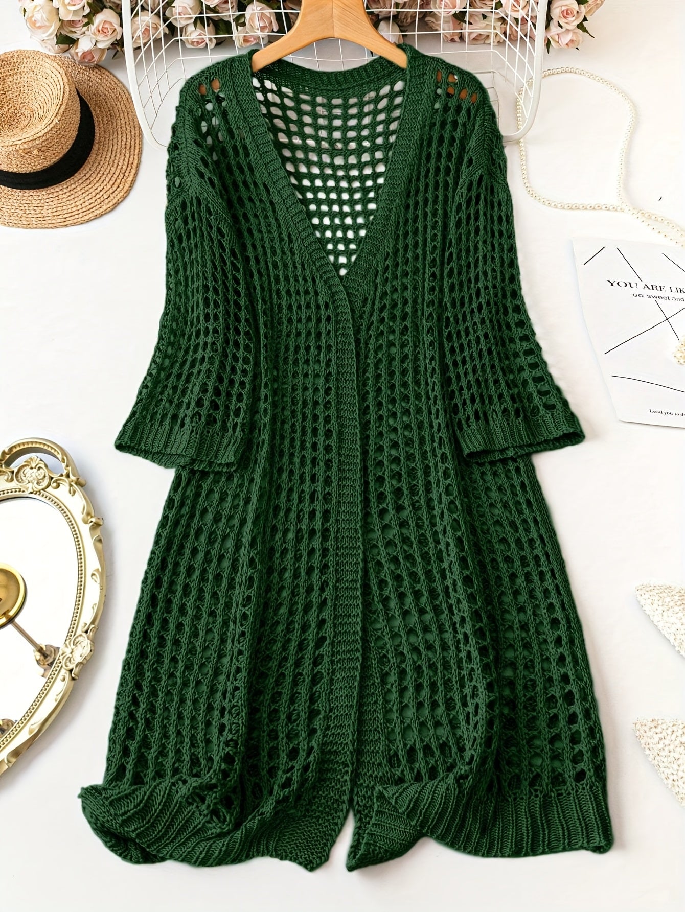 Women Plus Size V-Neck Cardigan Acrylic Hollow Knit Solid Spring Summer