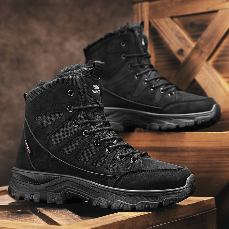 Women's Beige Mid-Top Outdoor Slip-On Hiking Boots
