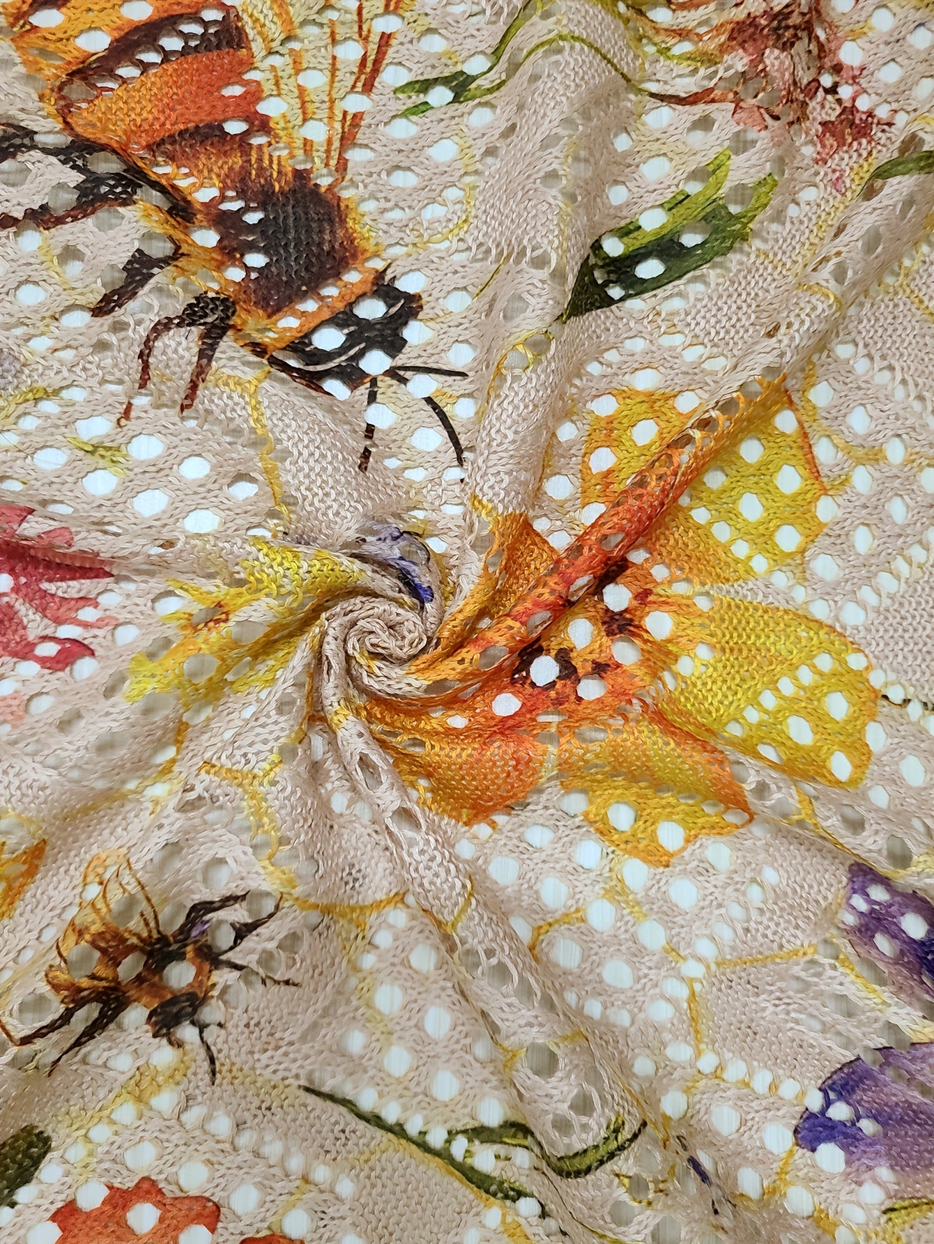 Women's Boho Short Sleeve Cardigan with Floral Print and Rhombus Cut-Outs