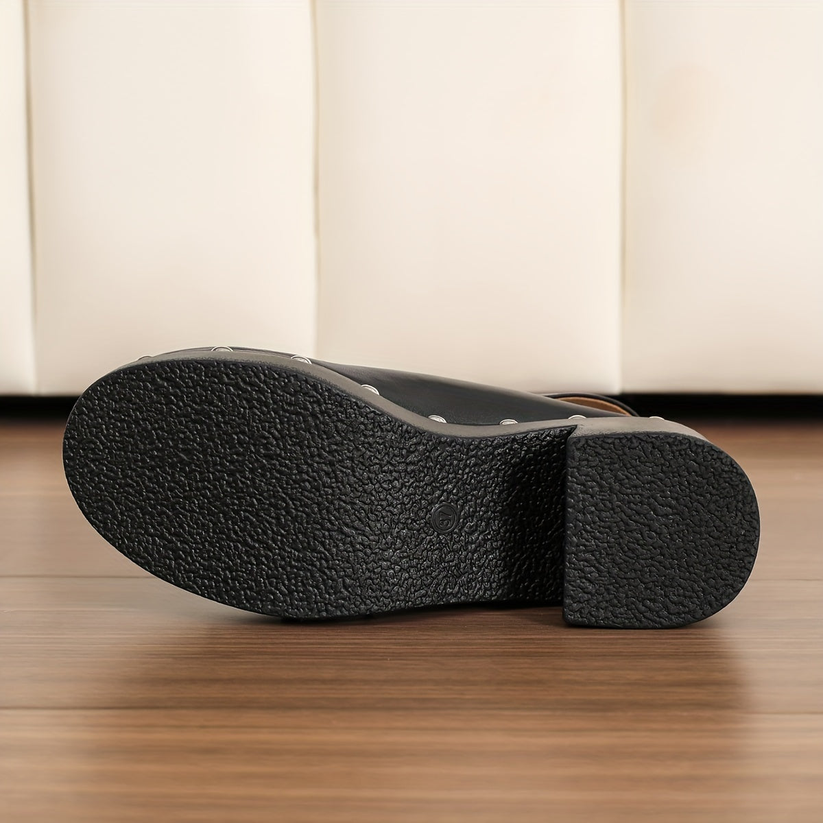 Women's Chunky Platform Sandals Synthetic Closed-Back Studded Black All-Season