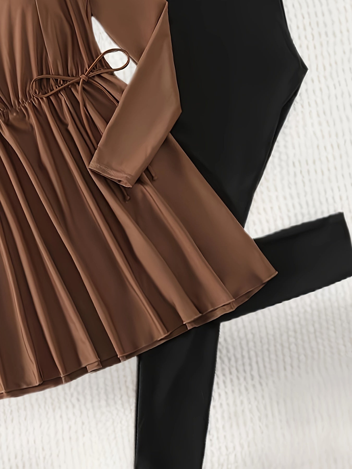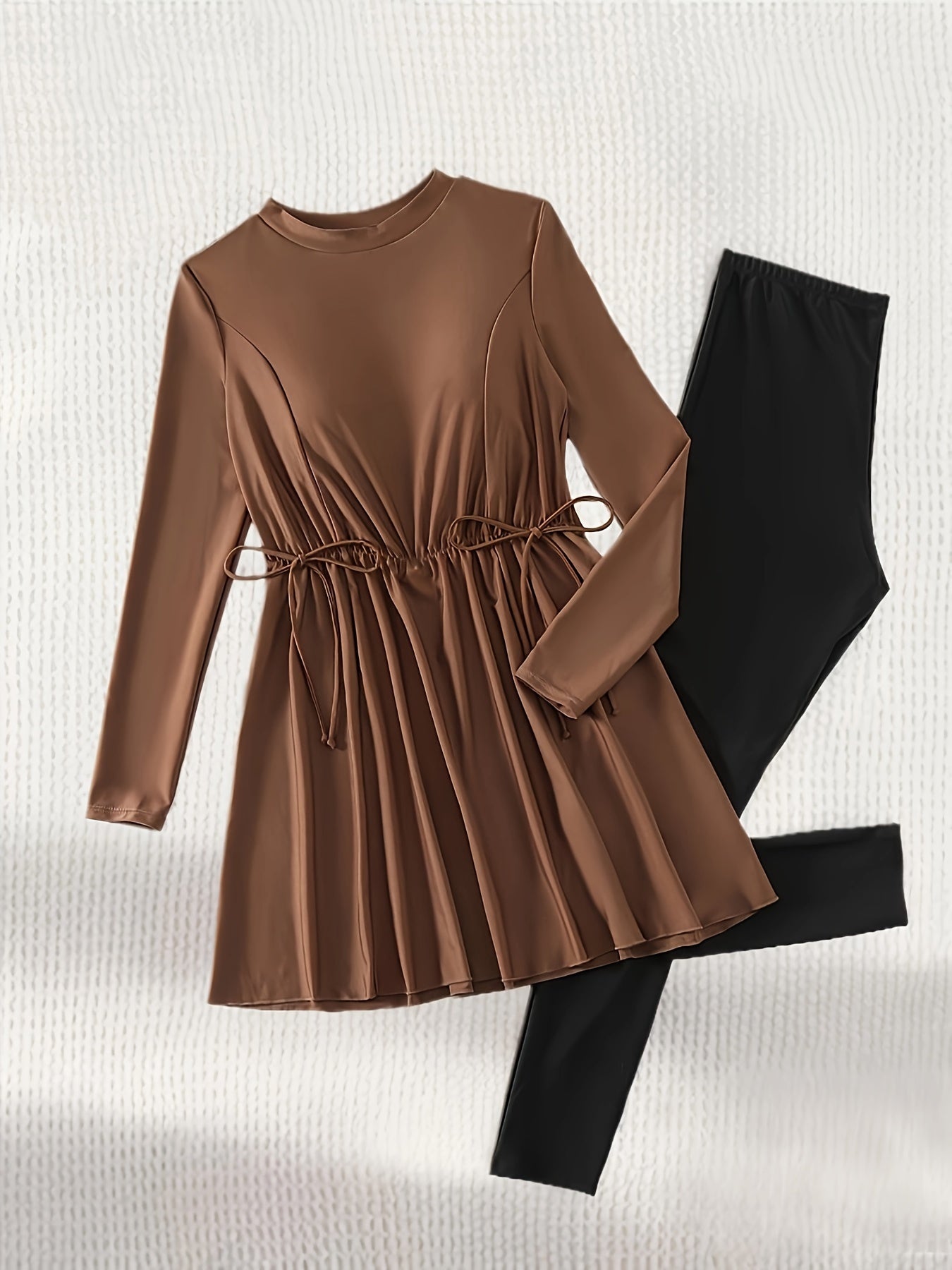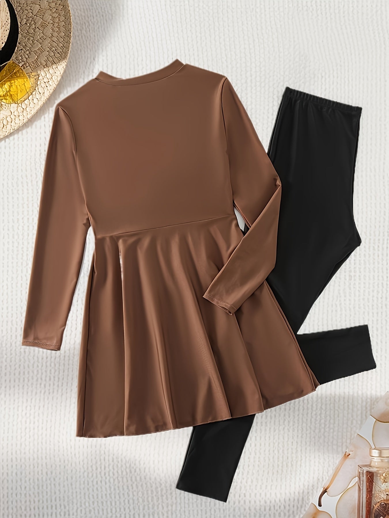 Women's Conservative Full-Length Swimsuit Set High Neck Solid Polyester Knit