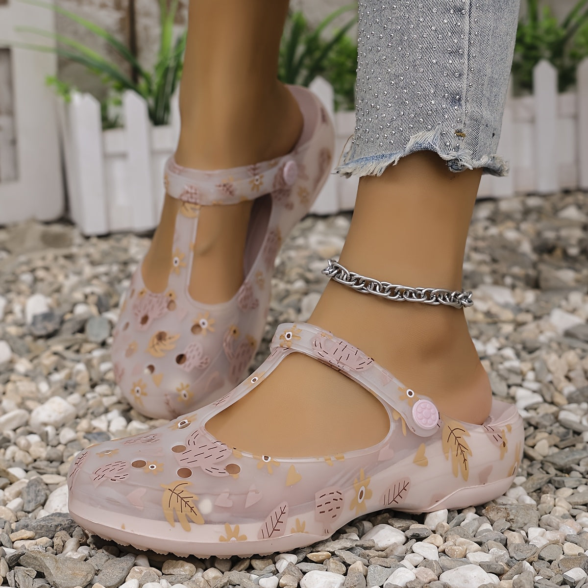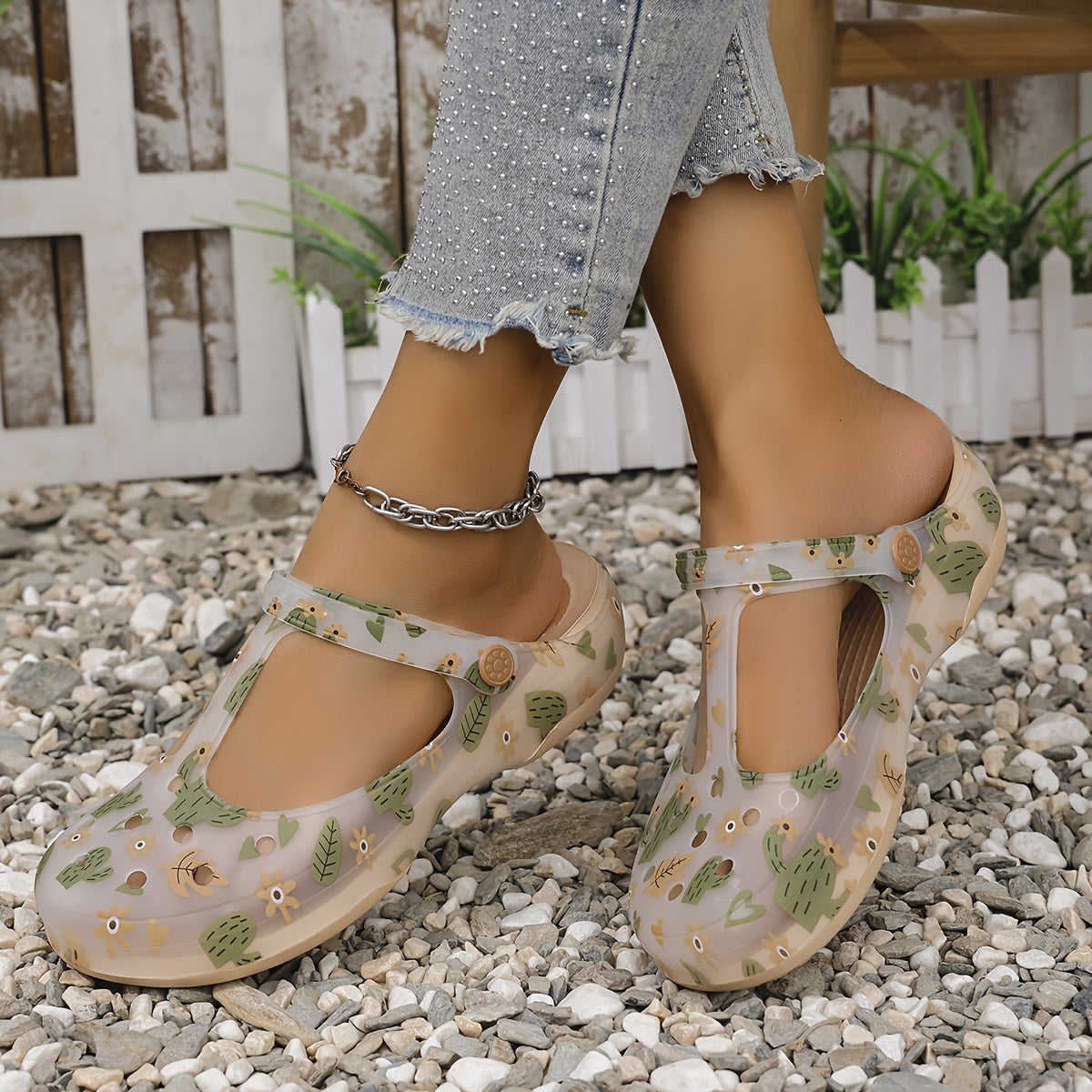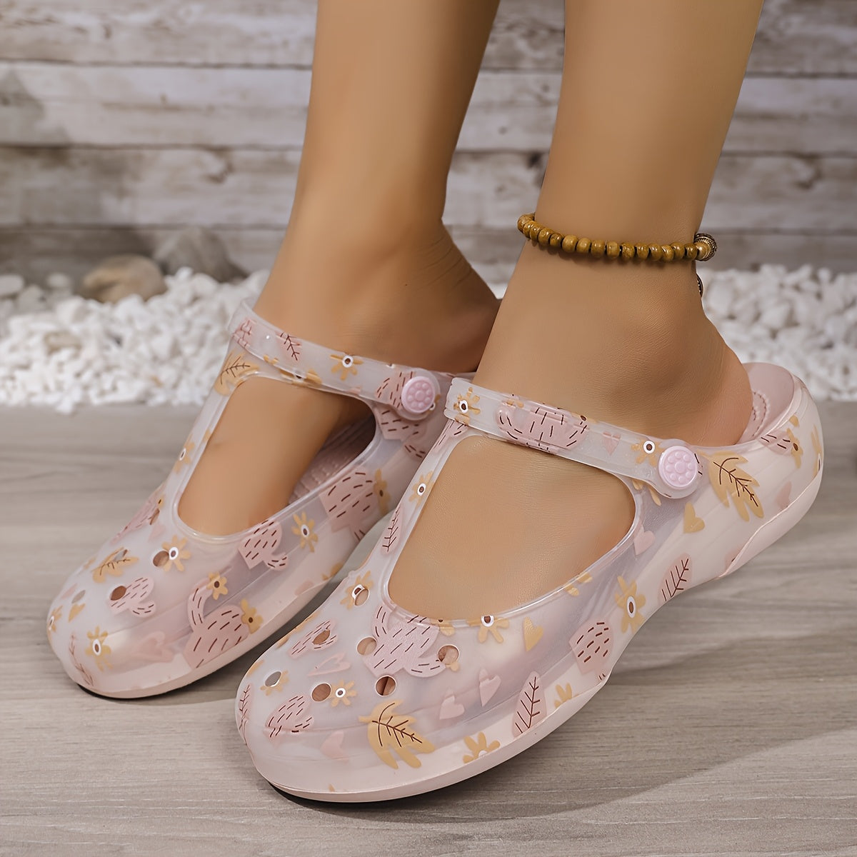 Women's EVA Slip-On Sandals with Cartoon Floral Pattern and Mid-Heel