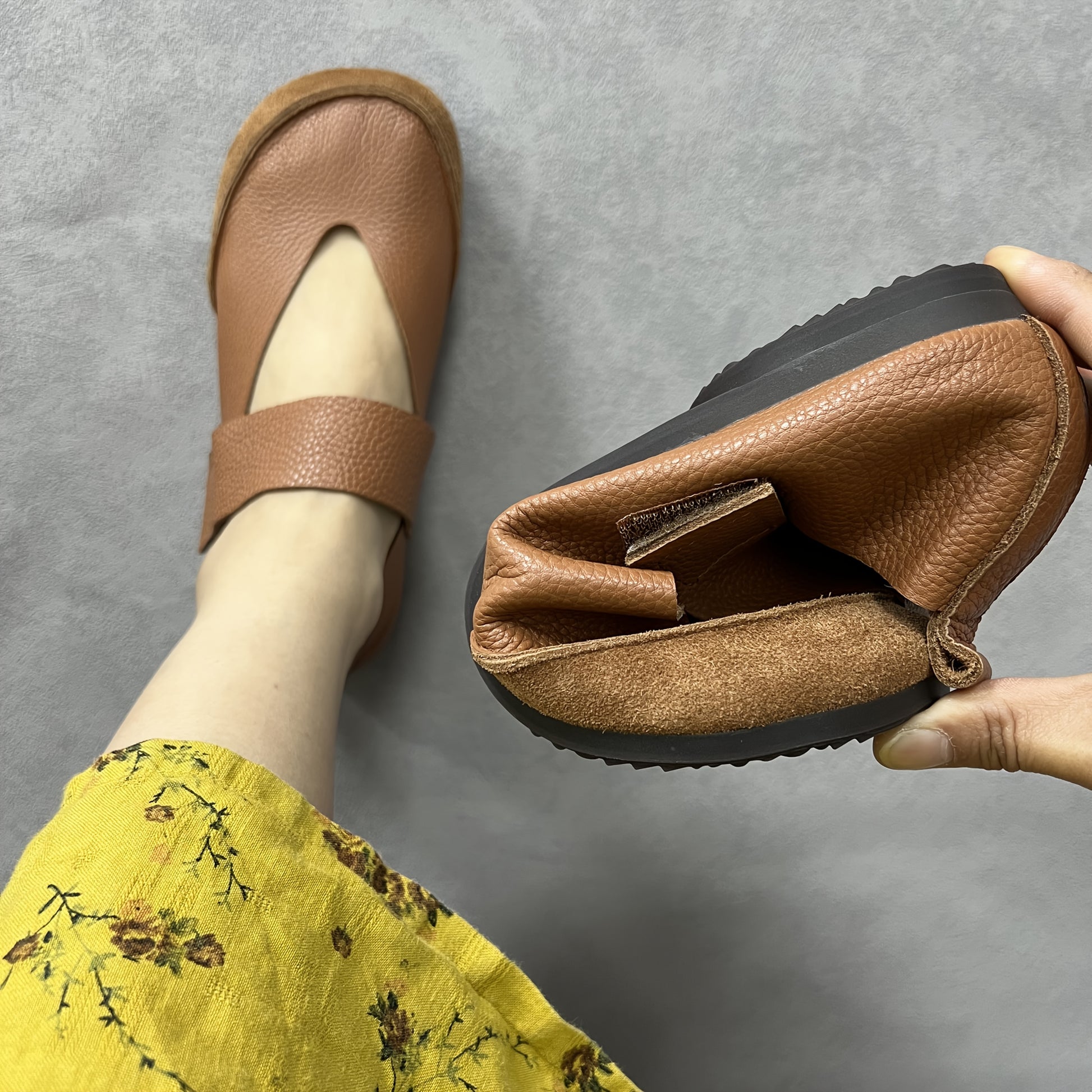 Women's Genuine Leather Mary Jane Flats Brown Breathable Comfortable
