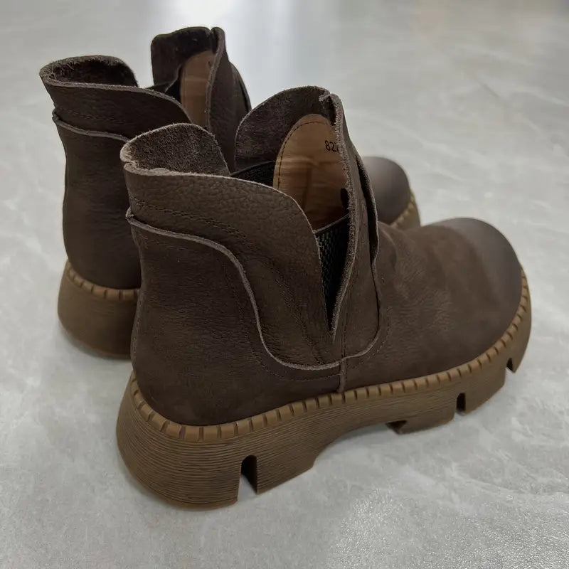 Women's Genuine Leather Short Boots Thick Soles Casual Round Toe