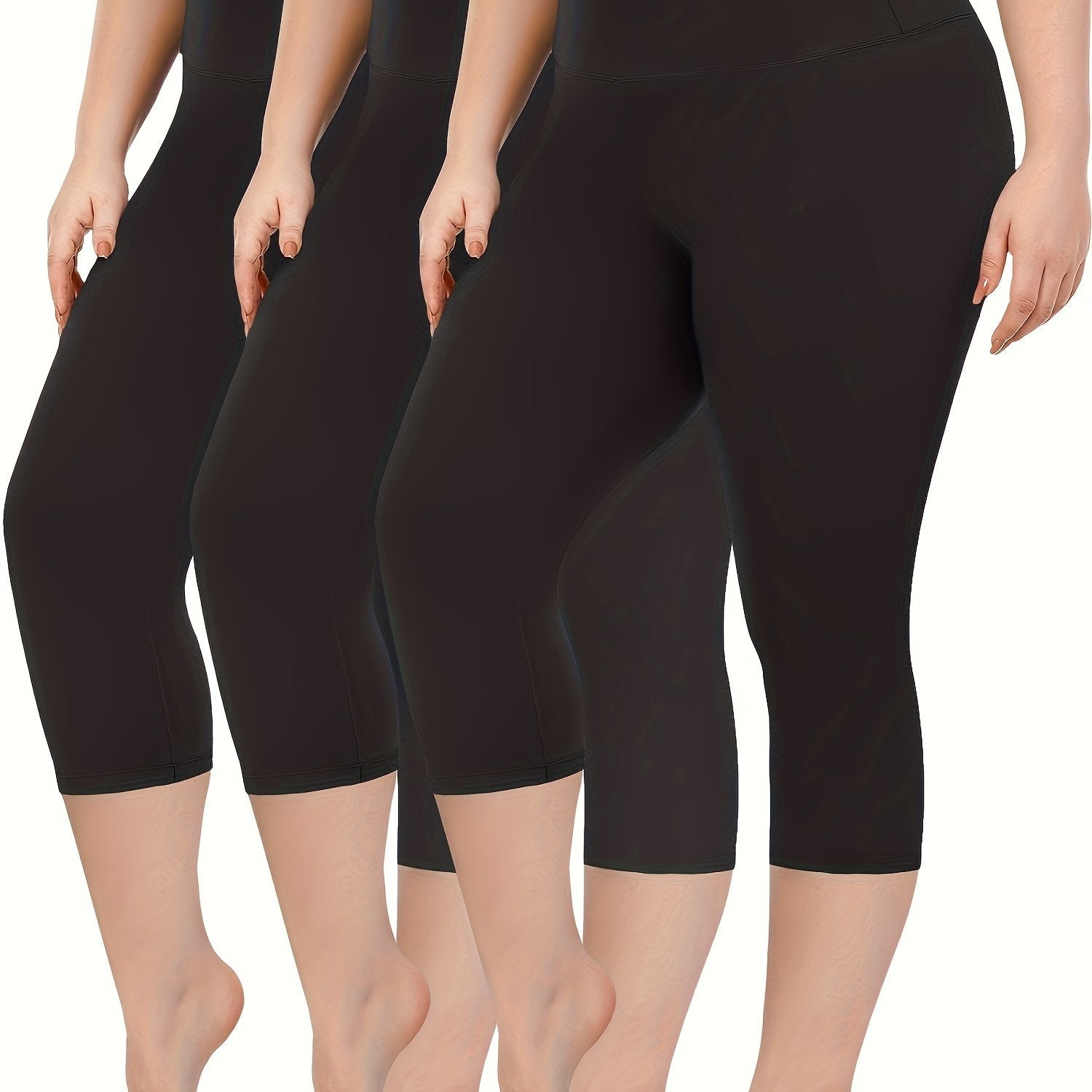 Women's High Waist Skinny Pants 3-Pack Solid Polyester 3/4 Length